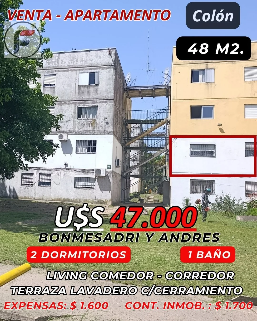 Excelente oportunidad para invertir en COMPLEJO AMERICA. Muy cerca del centro de Colón y con todos los servicios a metros (Comercios, transporte público, colegios y liceos). Primer piso por escalera.