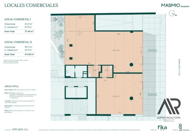 Ubicado en la estratégica calle Guayabos, en el corazón de Cordón SUR, se ofrece en alquiler un moderno local comercial a estrenar de 115 m2, que incluye 100 m2 de área cubierta y 15 m2 de espacio exterior al frente.  Las instalaciones están especialmente previstas para uso gastronómico, permitiendo la instalación de mesas y sillas en la vereda exterior, lo que potencializa la experiencia para clientes.  Esta propiedad se encuentra en un edificio de diseño contemporáneo, recientemente inaugurado, que alberga 110 apartamentos equipados con tecnología de última generación.