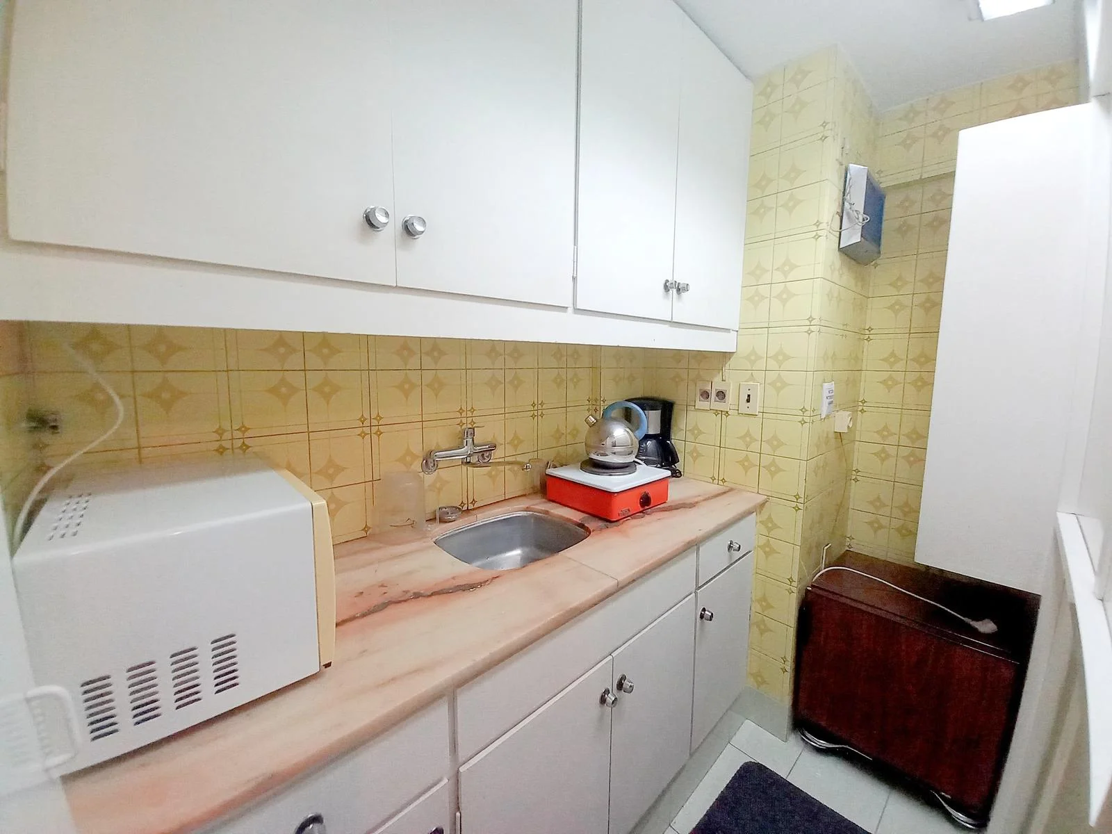 Cocina equipada con frigobar, microondas y cafetera. Cuenta con calefón.