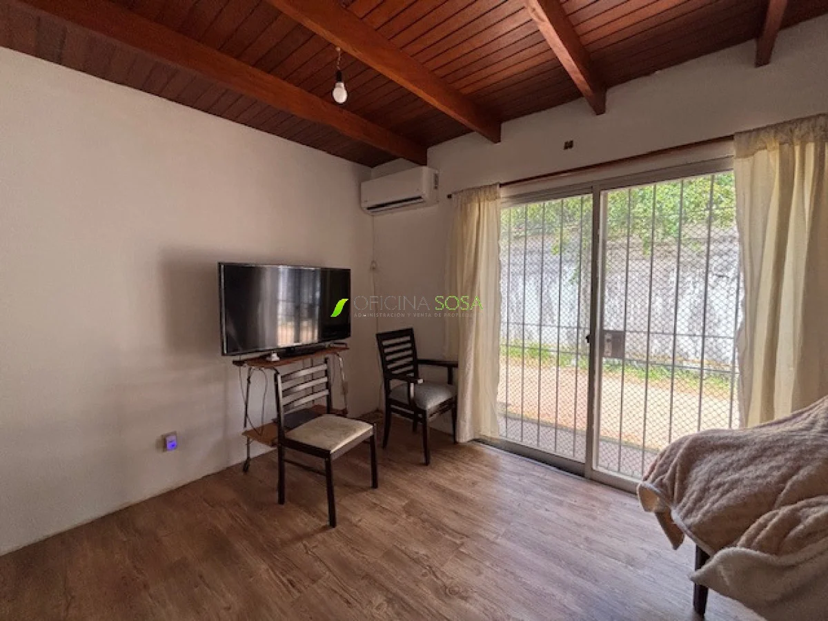 Casa de dos dormitorios que se accede por la entrada lateral con living, comedor, cocina, baño y patio independiente en muy buen estado