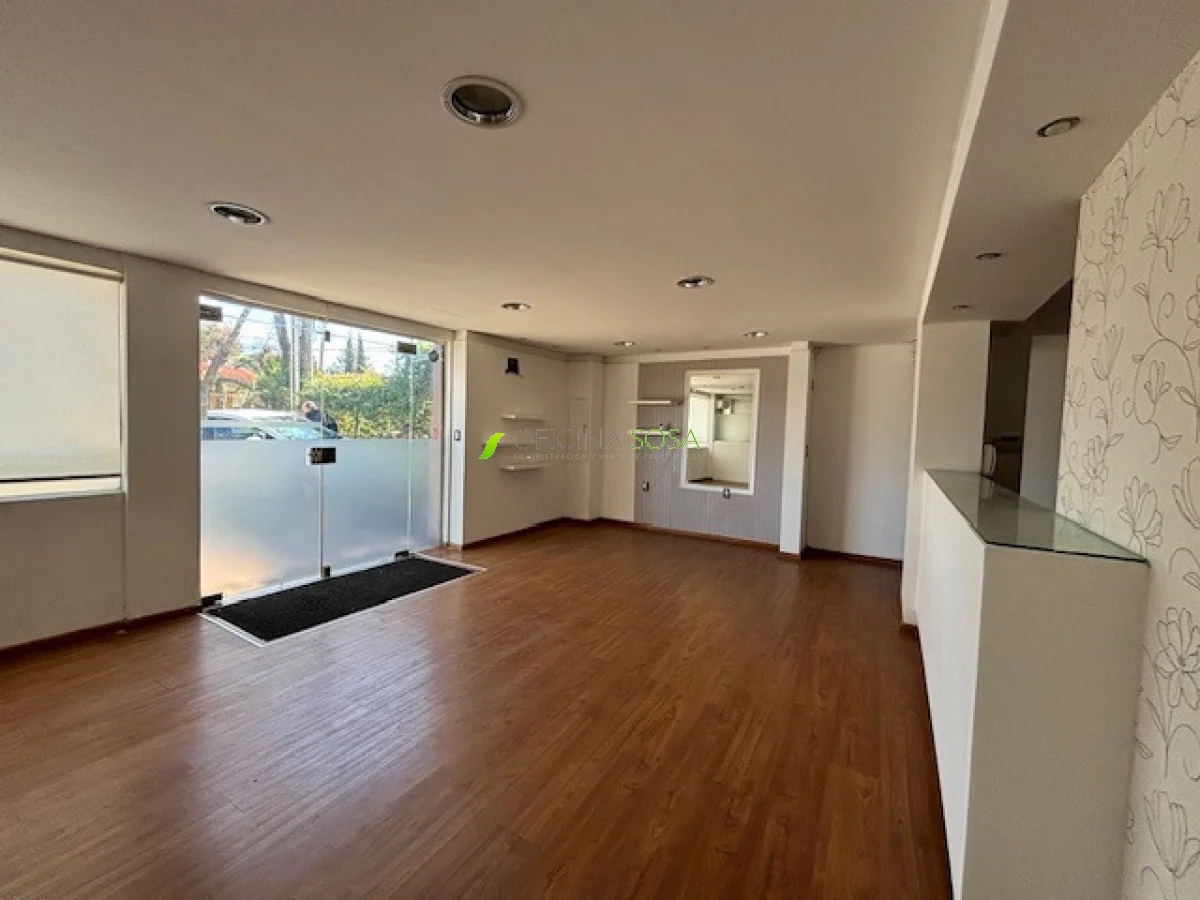 El local al frente moderno con salon principal, privado y recepción atrás cuenta con otra parte más privada con baño y cocina.