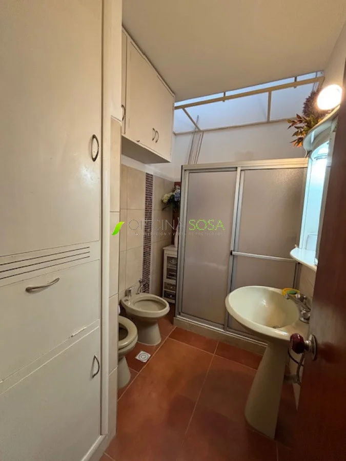 En planta alta se desarrolla la casa con un lindo living comedor al frente piso de parquet, 3 dormitorios también piso de parquet con placares, cocina comedor diario de lindas dimensiones con salida a una terraza y al fondo verde. Cuenta con una barbacoa y parrillero.