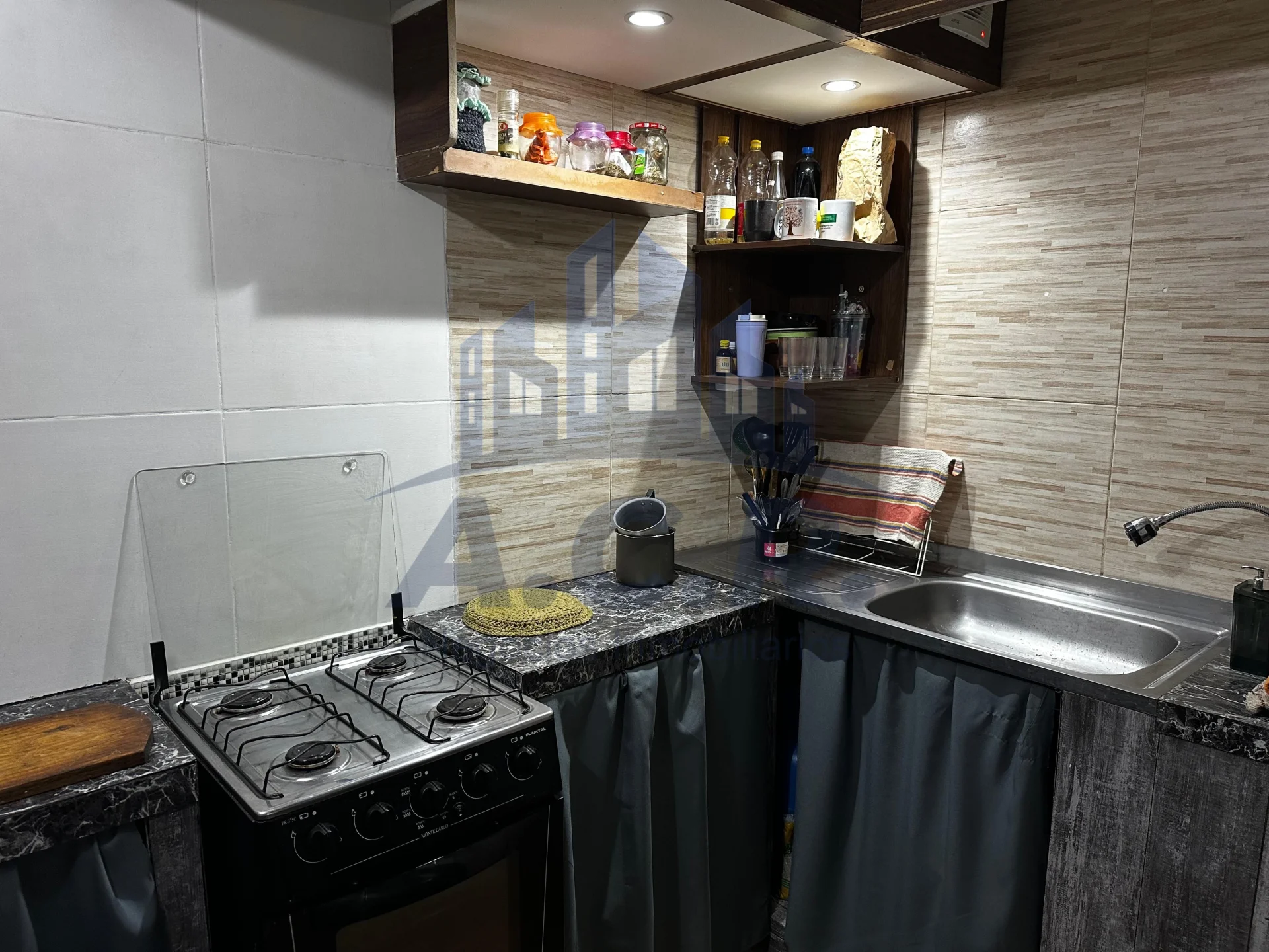 Detrás del living se desarrolla un estar diario, con cocina semi-integrada en muy buen estado, equipada con campana, extractor y cañerías en termofusión.