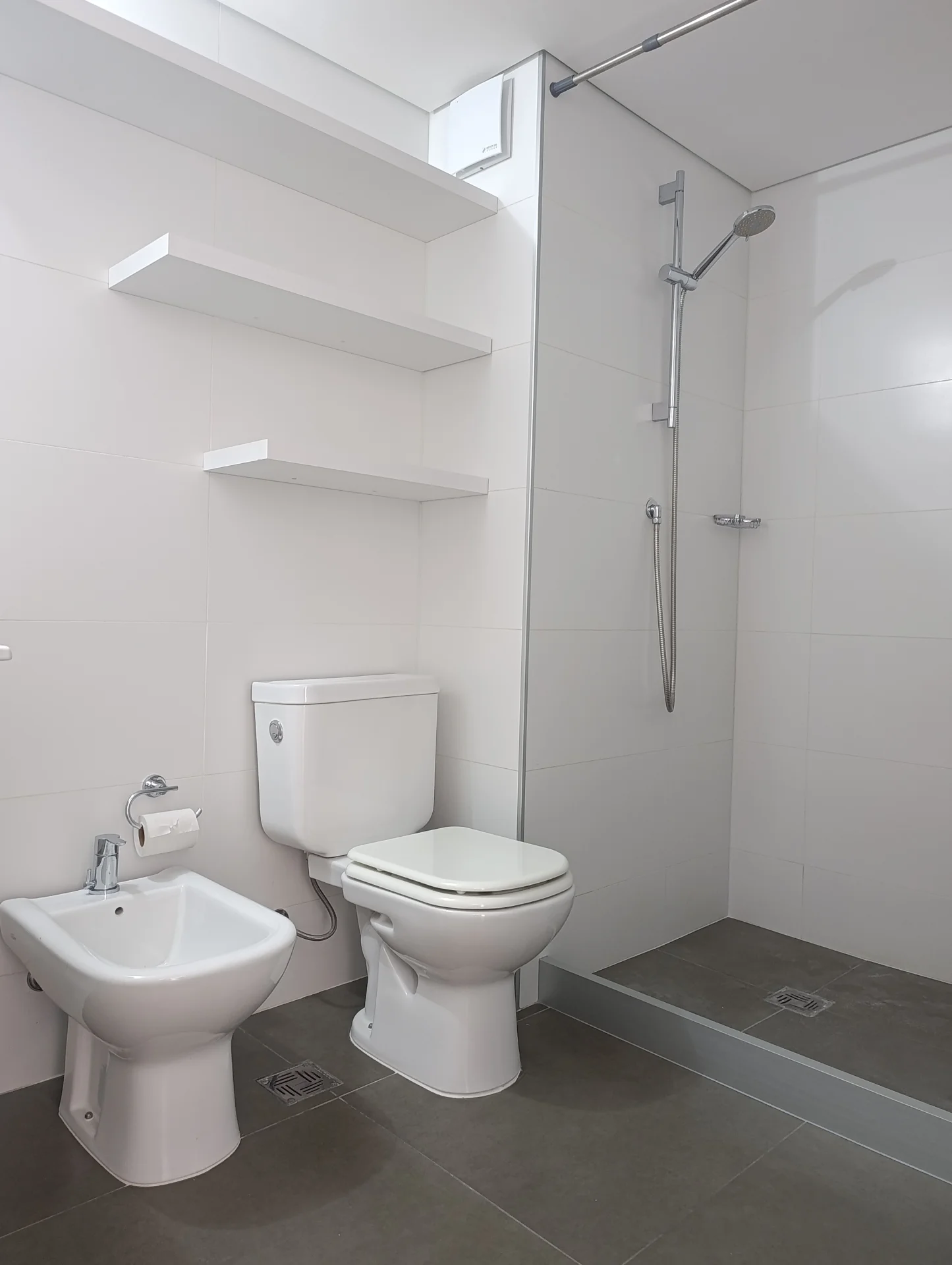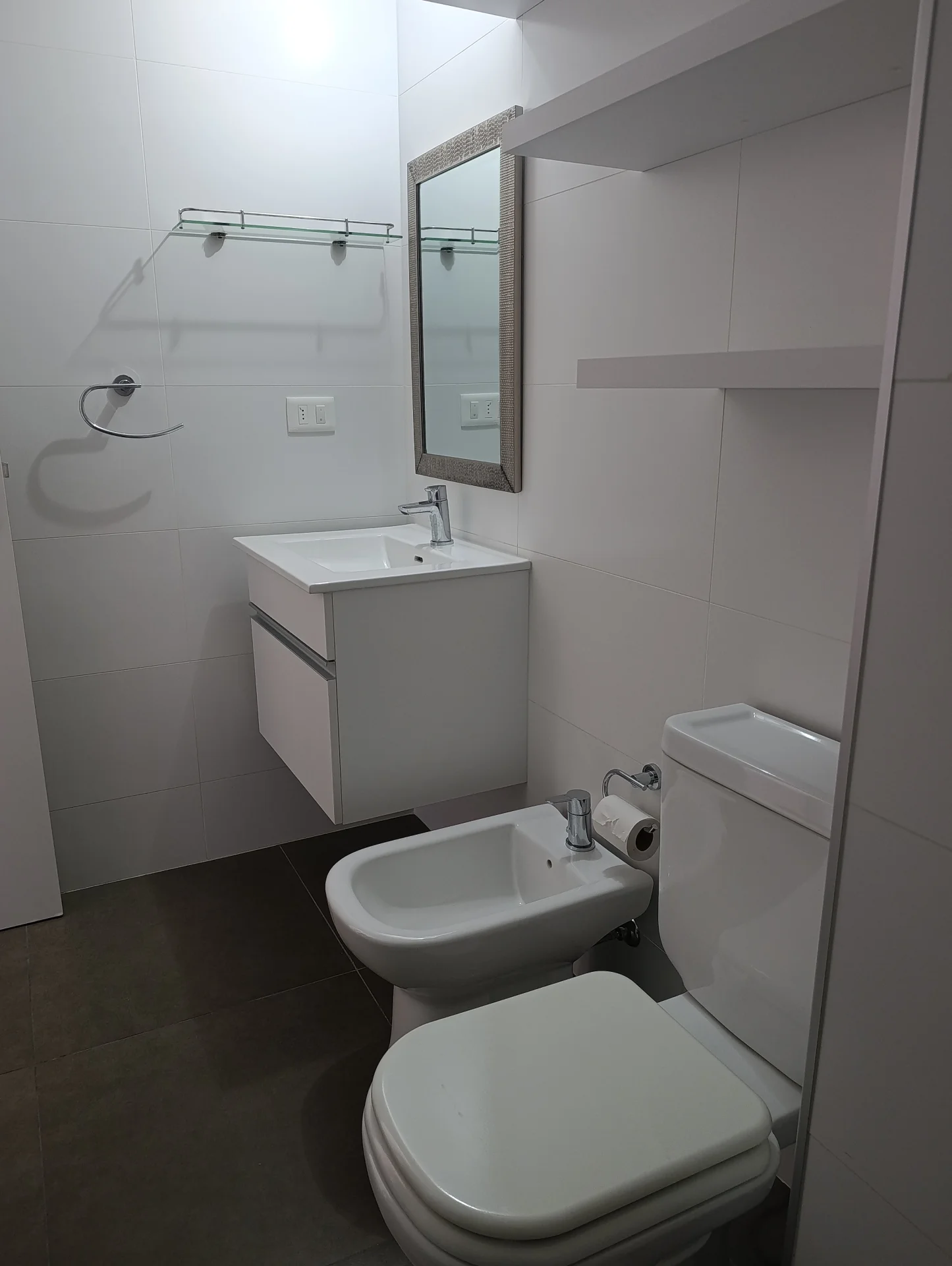 - Baño completo muy moderno con porcelanato al piso y ceramicas de revestimiento.