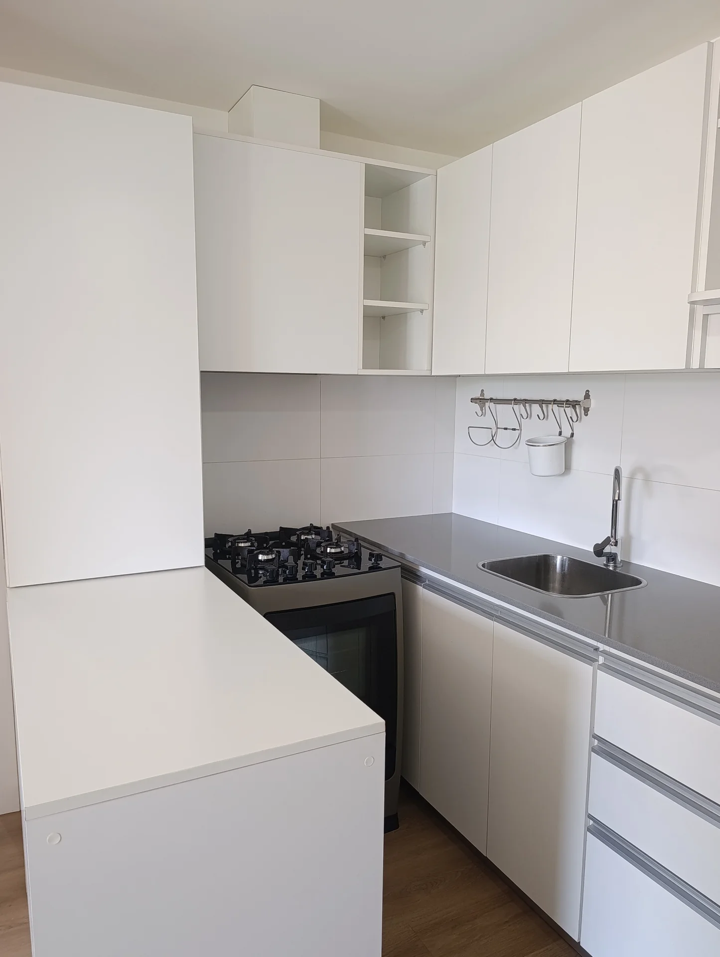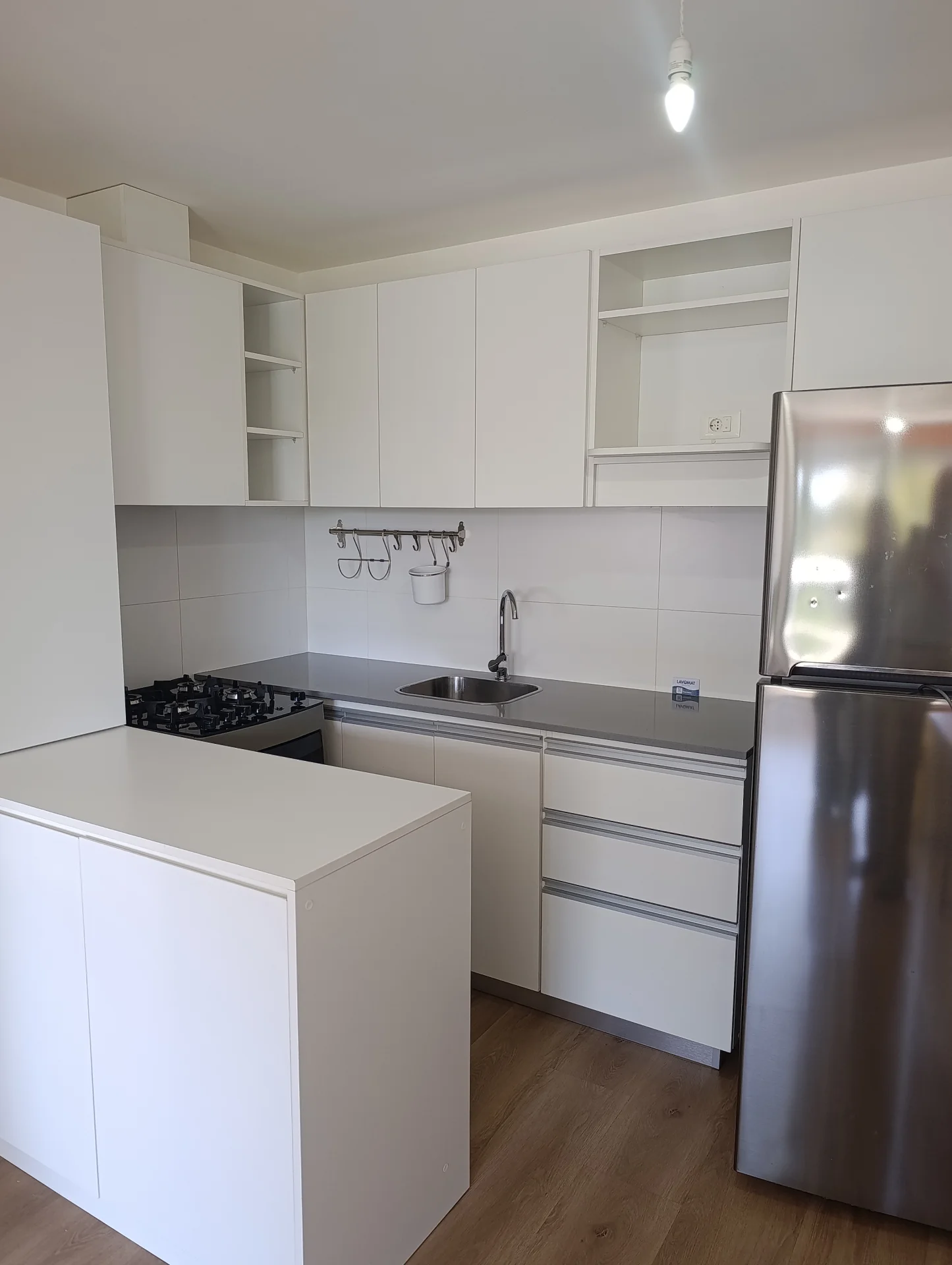 - Cocina integrada con doble mesada y placares sobre y bajo mesadas. Con desayunador.