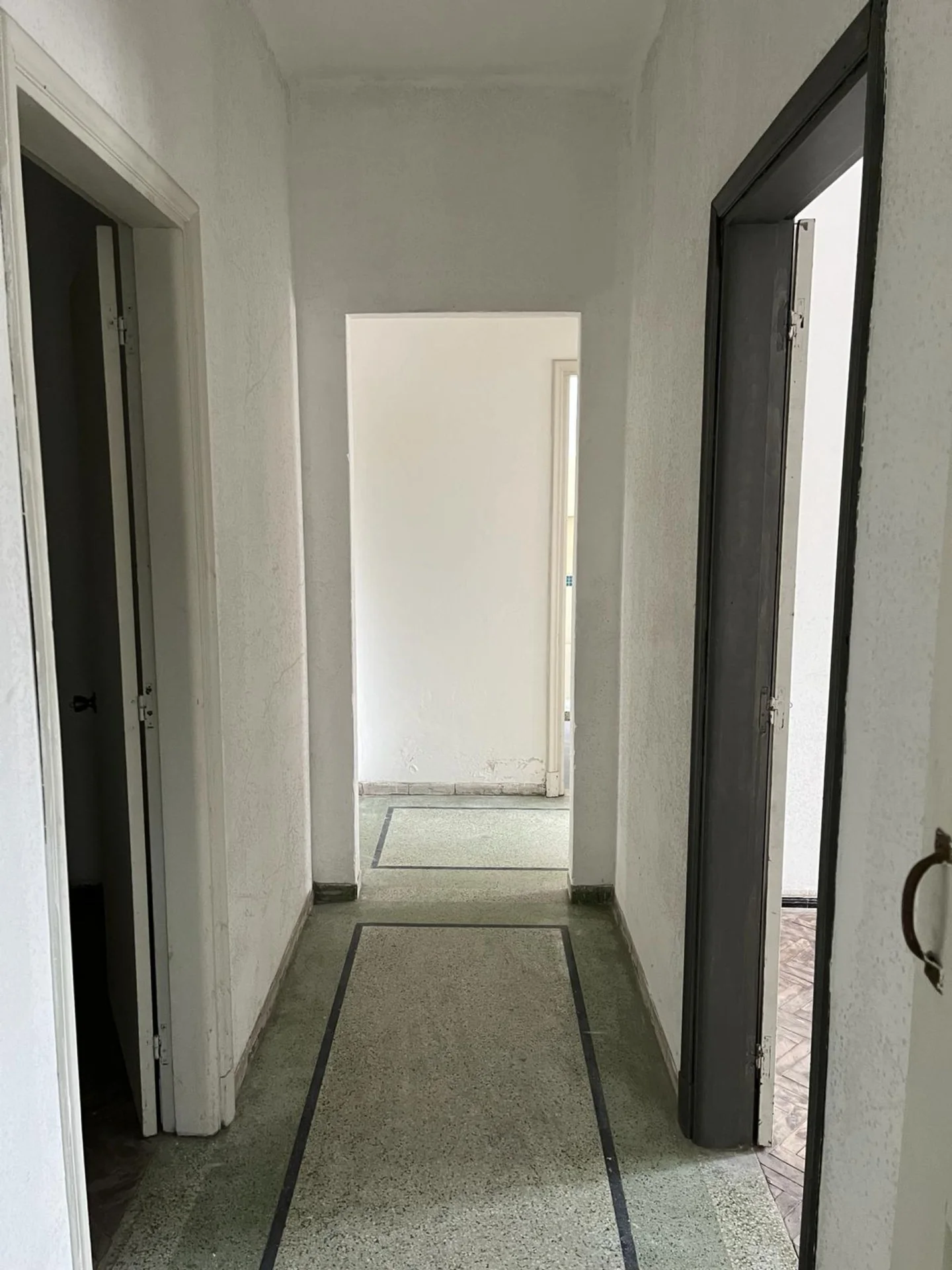 Tiene cuatro dormitorios de muy buen tamaño, dos baños completos, uno de ellos en suite (a reciclar). Todo los dormitorios tiene ventanas al exterior, dos al frente y dos al fondo.
