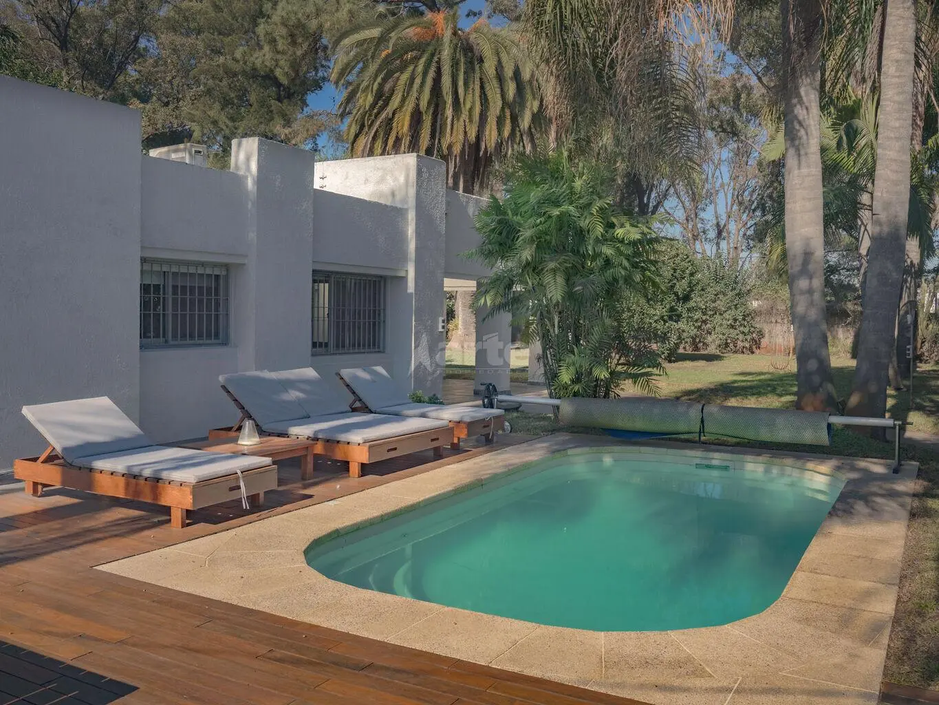 -Divino jardín que rodea la casa con piscina climatizada con amplio deck, ideal para disfrutar todo el año. Consta de riego automatizado