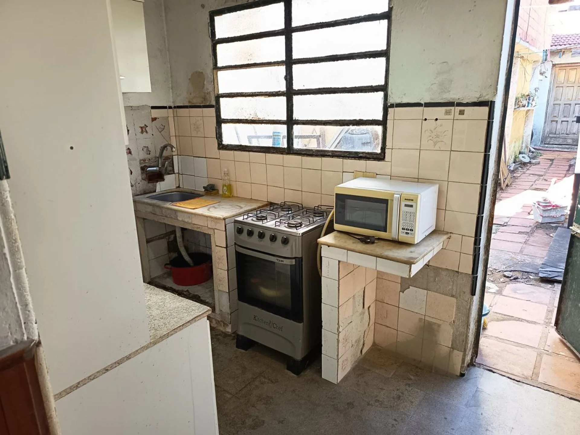 con ventana corrediza de aluminio y conexión para lavarropas.