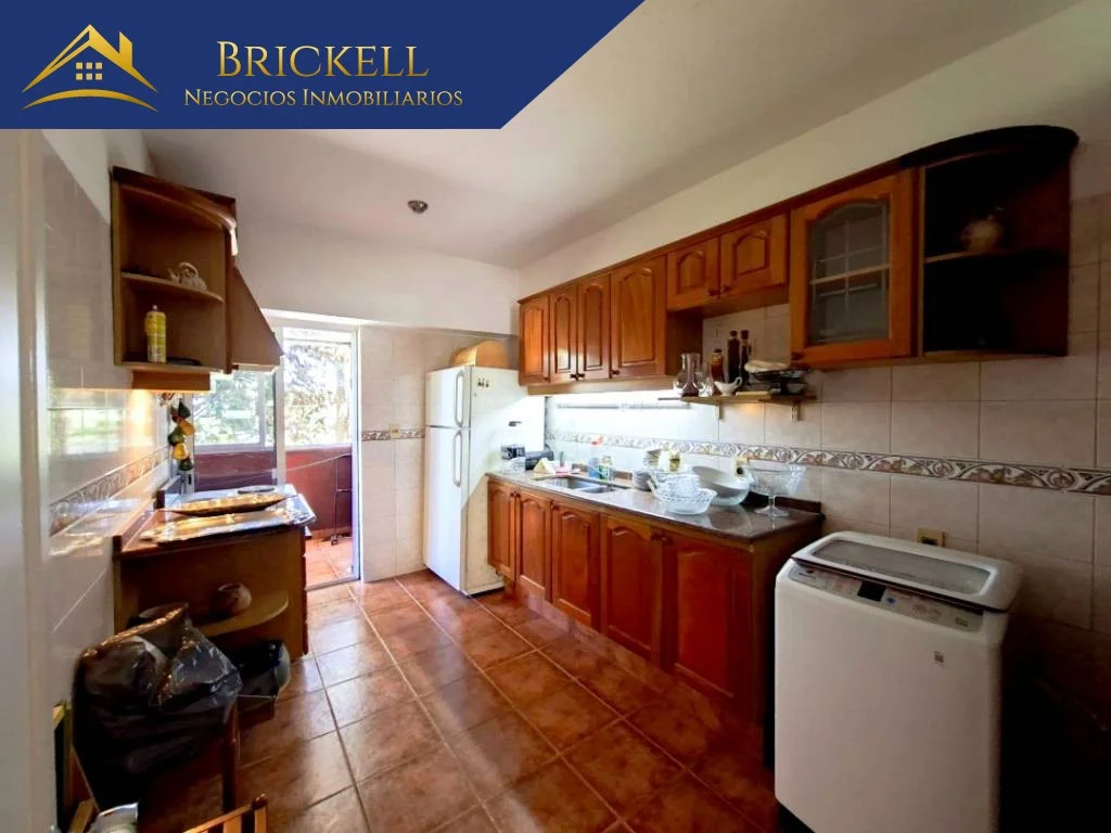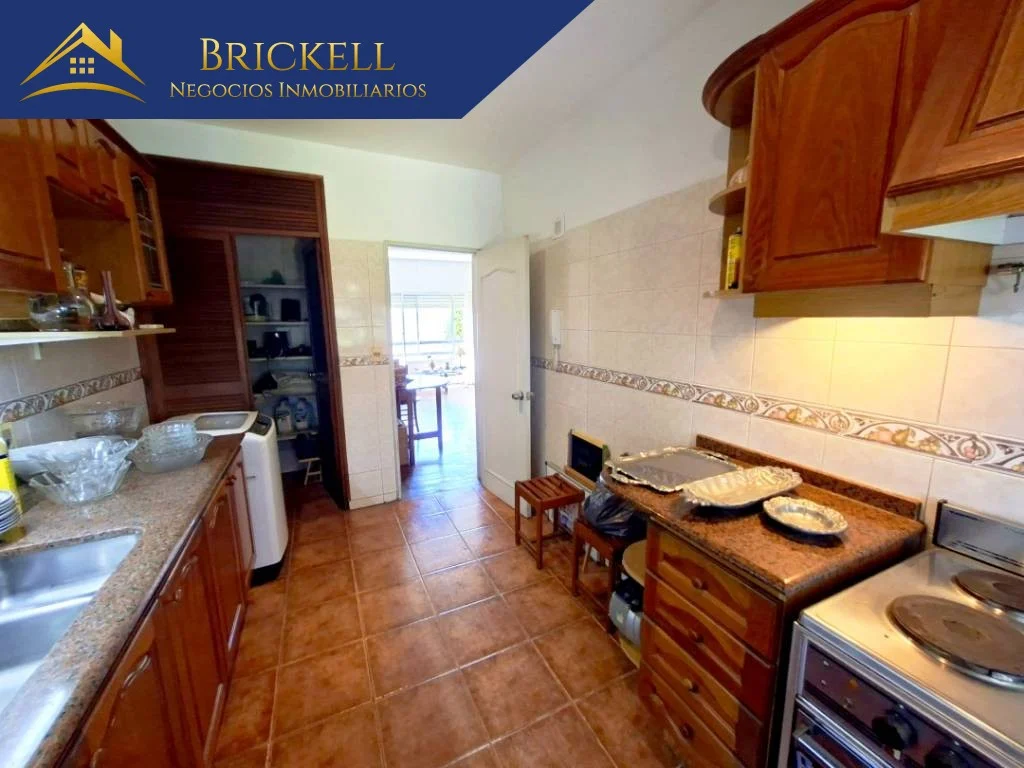 Muy cómoda cocina con varios bajo y alto mesadas. Despensa. Salida a muy linda terraza con cerramiento para aprovecharla todo el año.