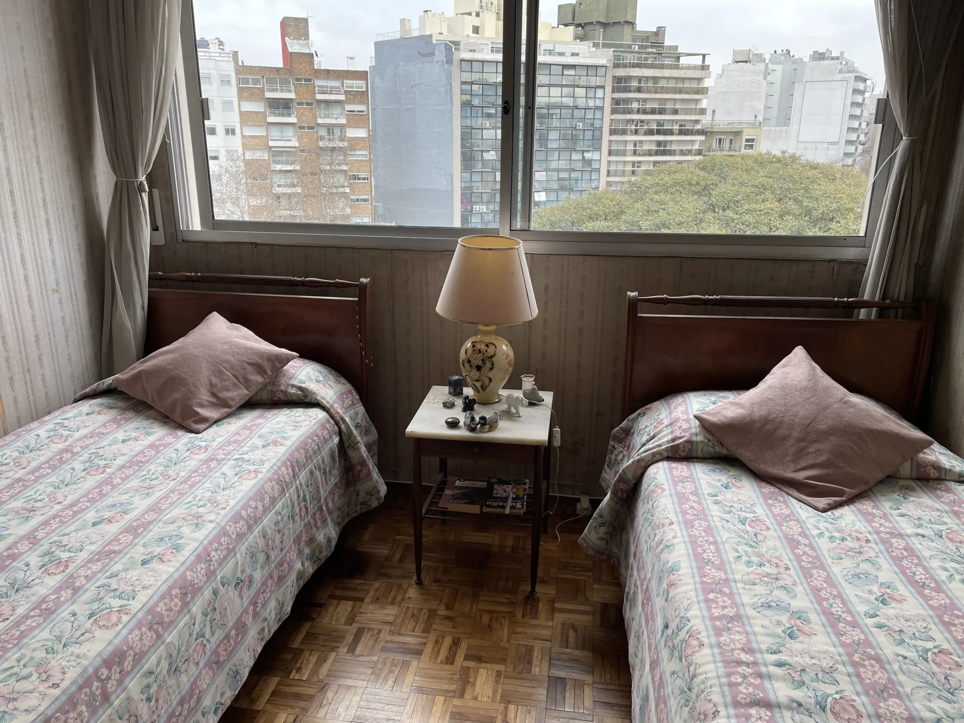 Excelente punto y construcción, edificio esquina, frente a una Plaza, todos los servicios al alcance, a pasos del Parque, de Facultad de Arquitectura , Ingeniería, muy iluminado Dos entradas, principal y de servicio, Planta de 3 dormitorios y servicio completo, actualmente funciona como 2 dormitorios y servicio, el tercero se unió al living comedor . Los tres dormitorios con placares, el principal con vestidor y la mejor vista. Dos baños completos reciclados hace unos 15 años , cocina de época con un office y salida a terraza lavadero, habitación y baño de servicio. Calefacción central con caldera a gas, portero con horarios de 8 a 12 y de 17 a 21 hrsMuy buen lugar de gge fijo de fácil acceso Véalo!!!!!!VIRGINIA RUBIO RUBIO NEGOCIOS INMOBILIARIOS