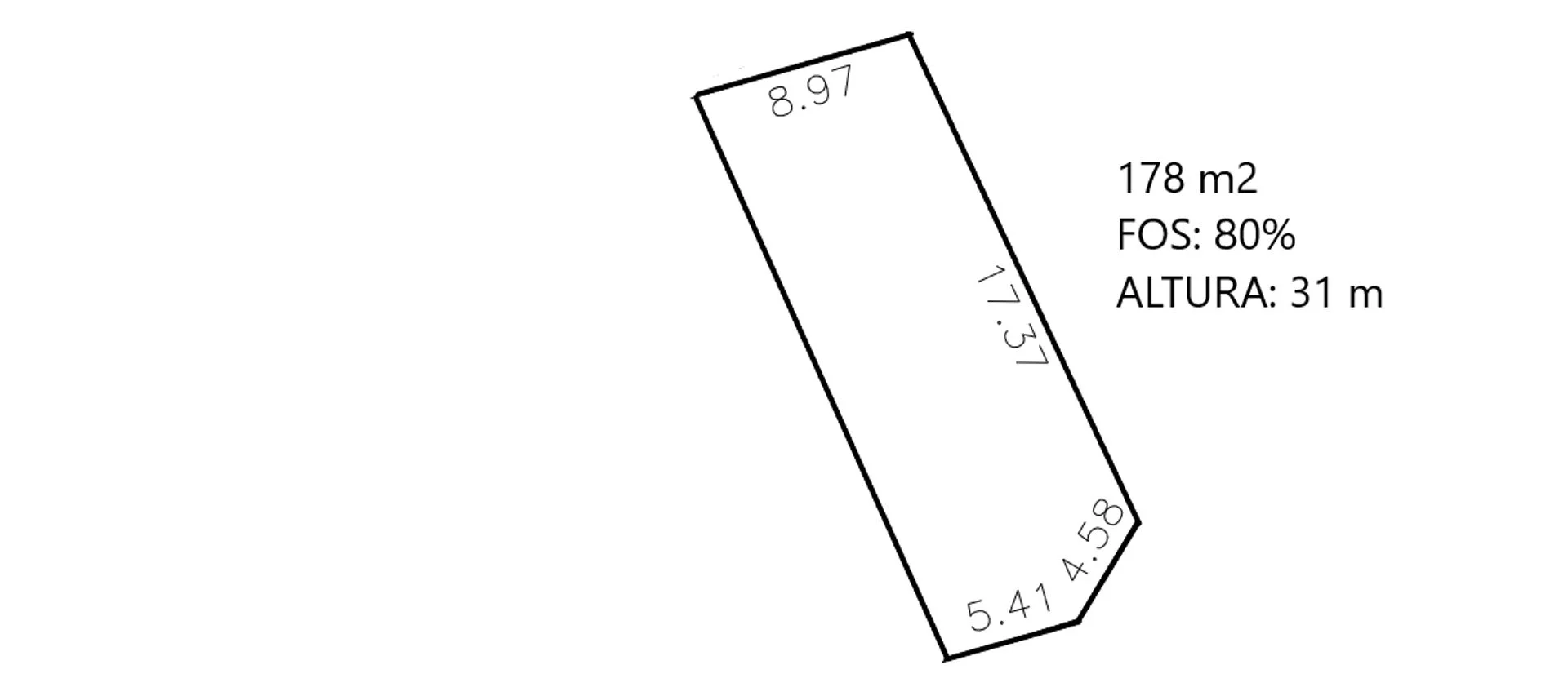 Características técnicas del terreno: frente de 17,37 m sobre Luis Sambucetti y 9,99 m sobre Avenida Italia. Factor de ocupación del suelo (FOS) del 80% y altura máxima permitida de 31 metros, amparado bajo la Ley VIS 18.795.