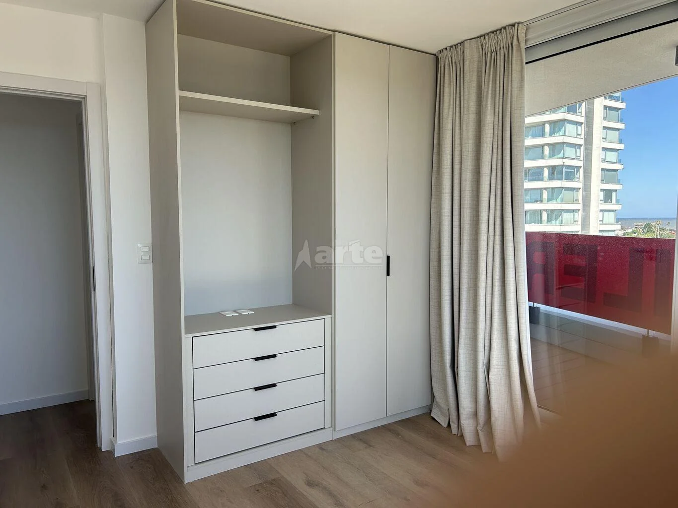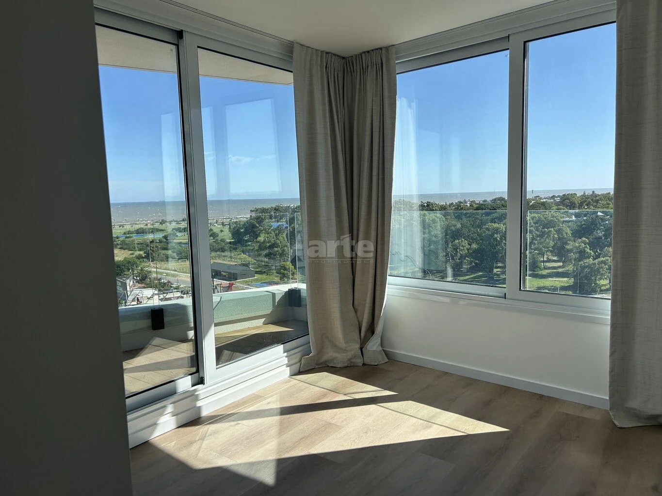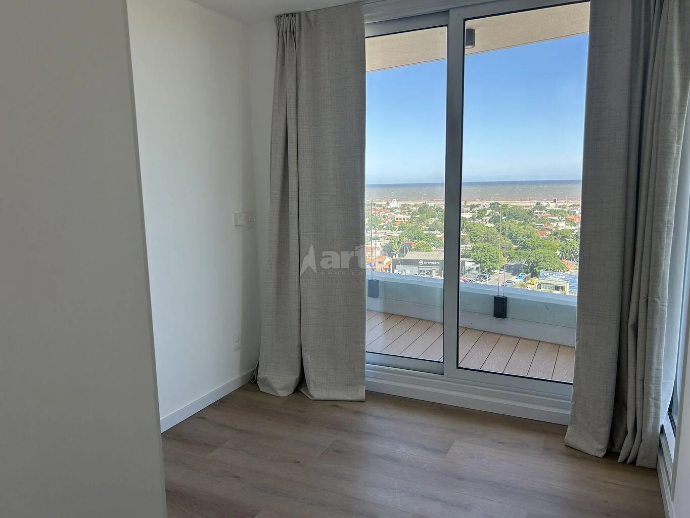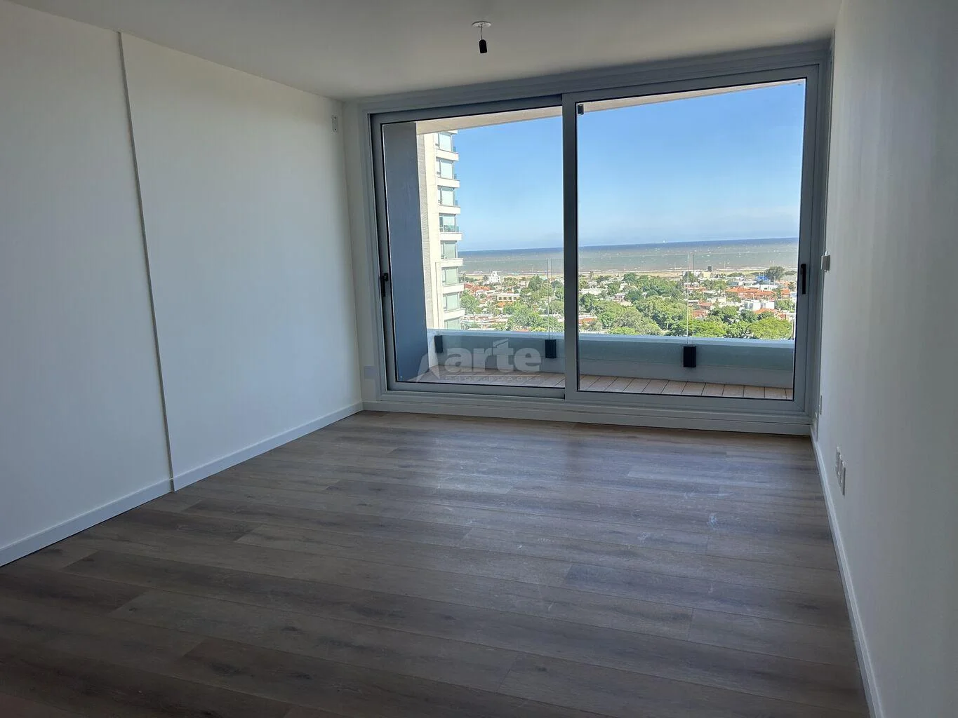 Luminoso apartamento con todos los ambientes exteriores y vistas despejadas, living comedor con cocina integrada por una barra con placares aéreos y bajo mesadas y vista al mar. Tres dormitorios con placares, baño completo y baño social, terraza que comunica el living y 2 dormitorios, garaje doble.