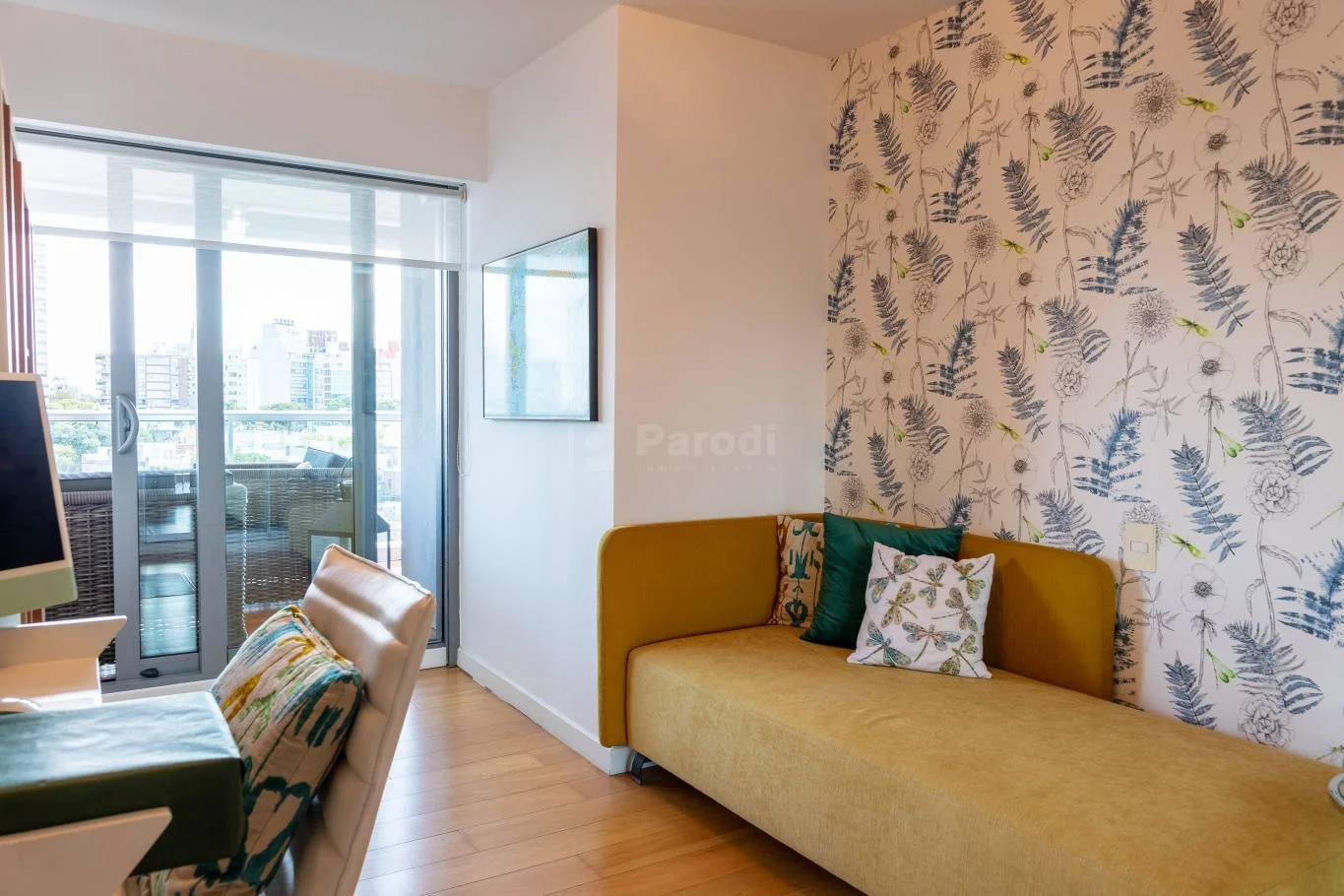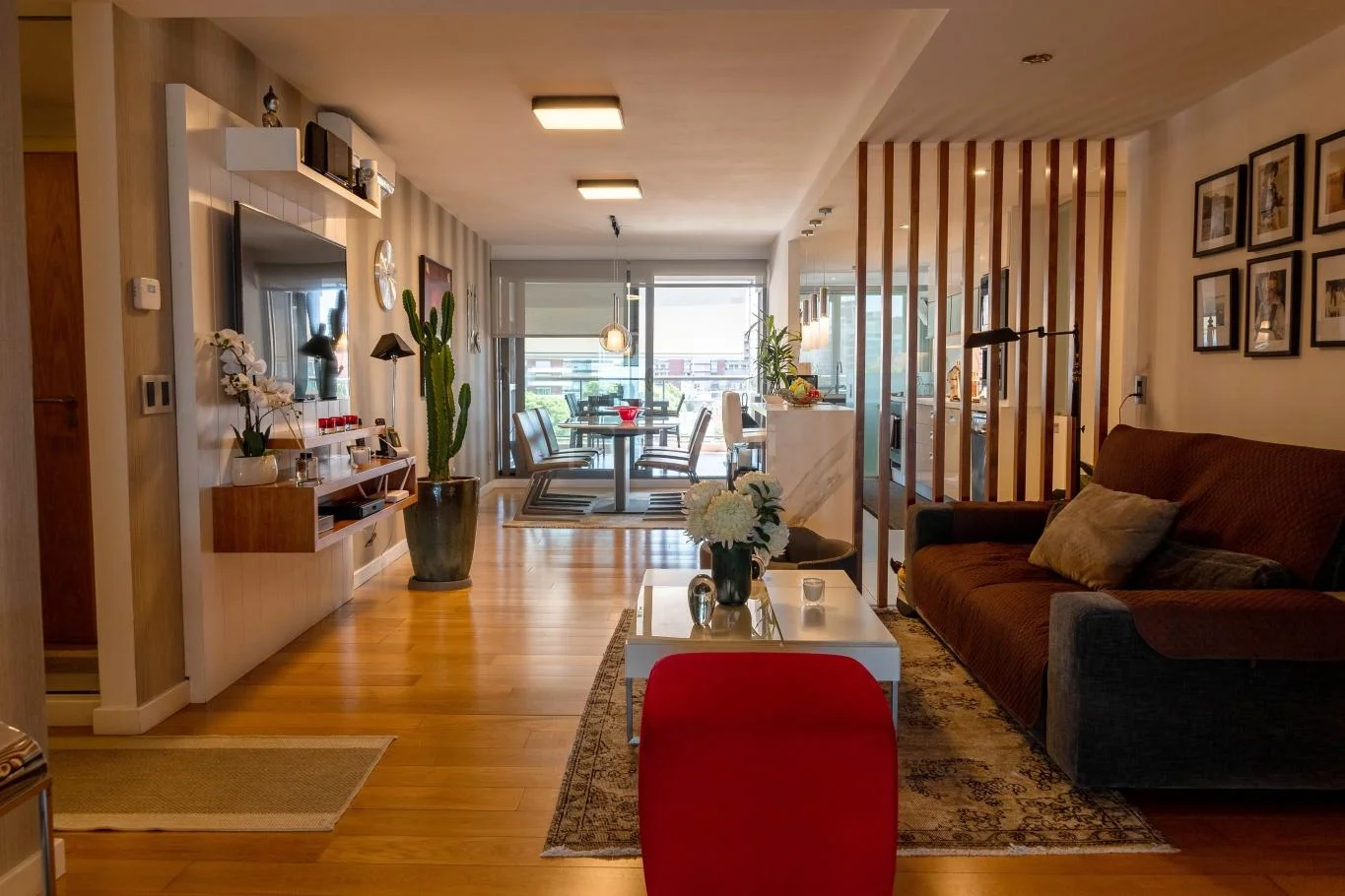 Hall de entrada. Amplio living comedor al frente con salida a gran terraza.