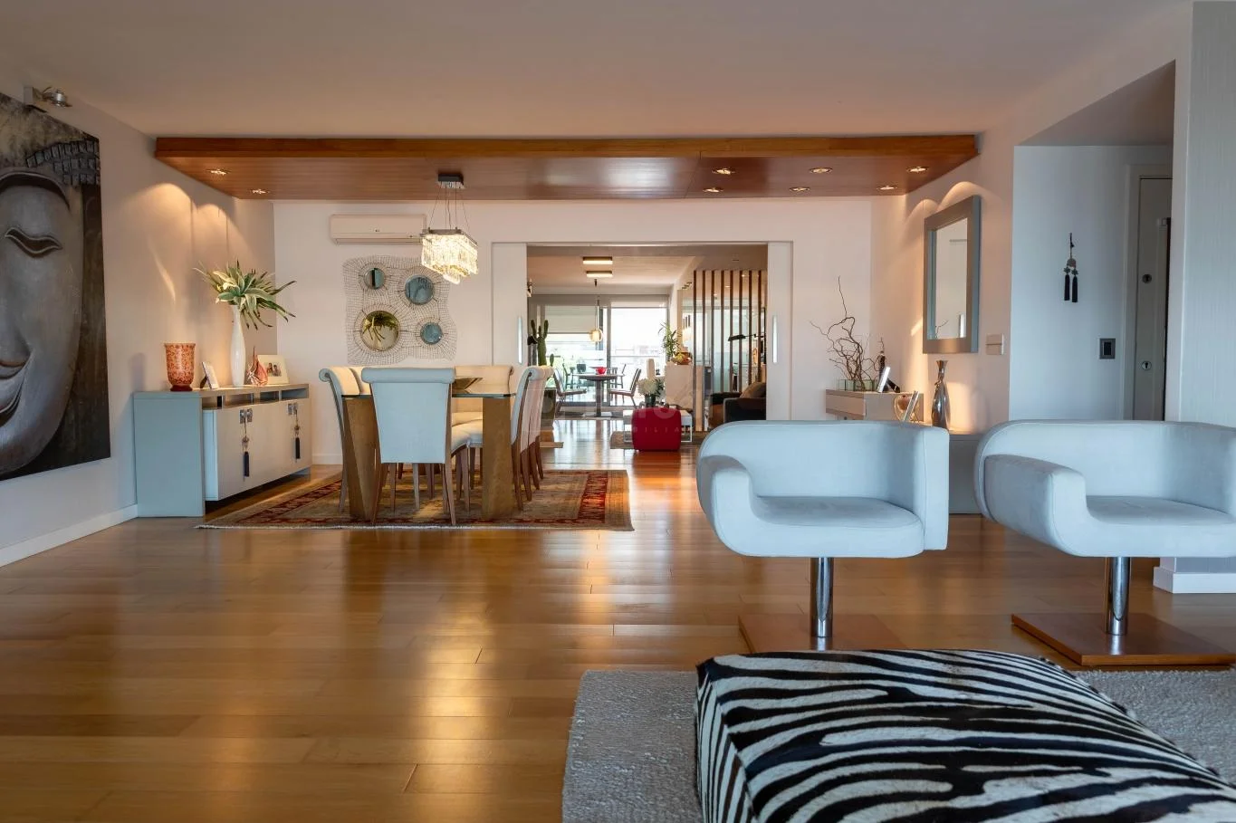 Aire acondicionado central en living comedor y dormitorios. Aberturas con vidrios acústicos con cámara de aire.