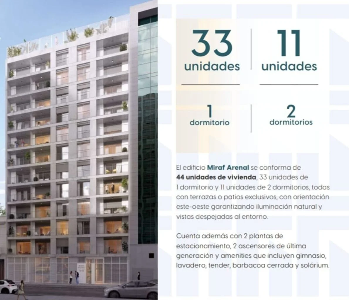 En el último nivel contará con barbacoa cerrada totalmente equipada con parrillero y amplias terrazas, solárium, gimnasio equipado, tendedero colectivo y lavadero.