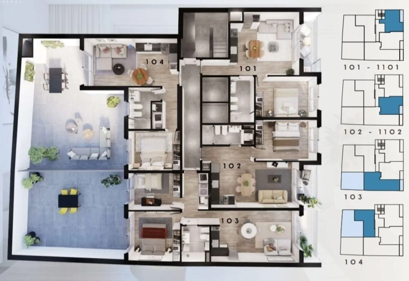 Todas las unidades cuentan con balcón o patio de uso exclusivo,
