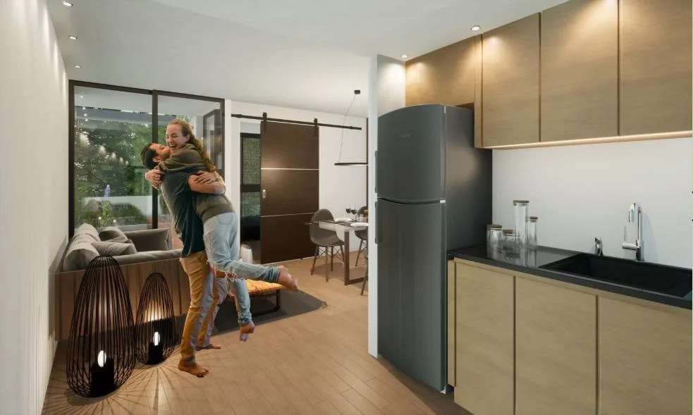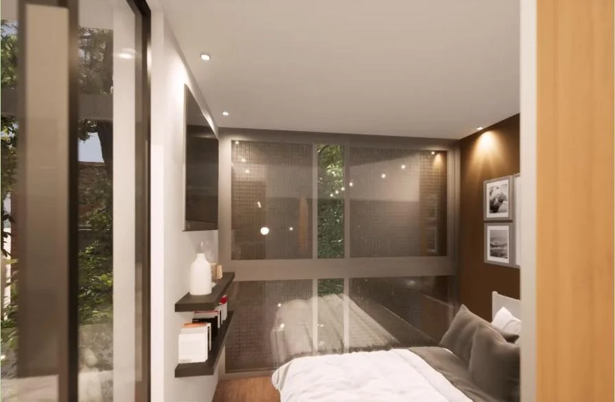 Diseño inteligente – Apartamentos de 1 dormitorio tipo Smart-Flex, con opciones de doble fachada y ventilación cruzada, logrando iluminación natural y excelente asoleamiento.