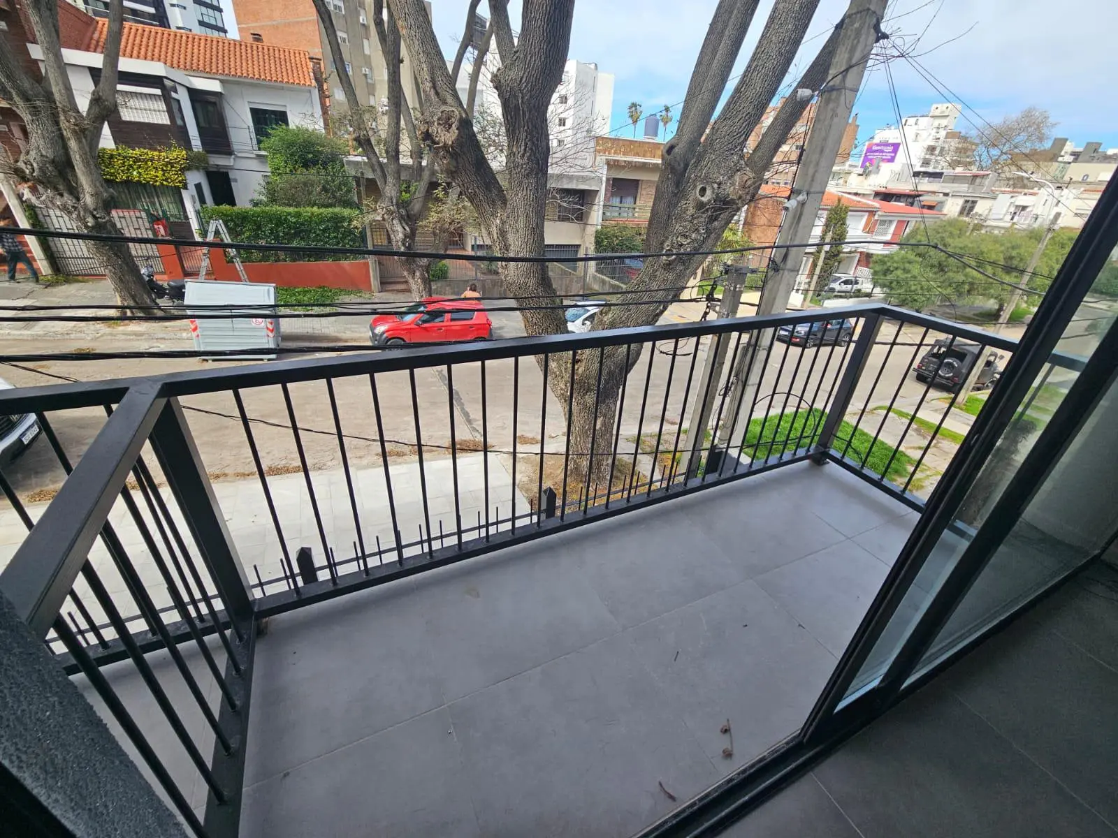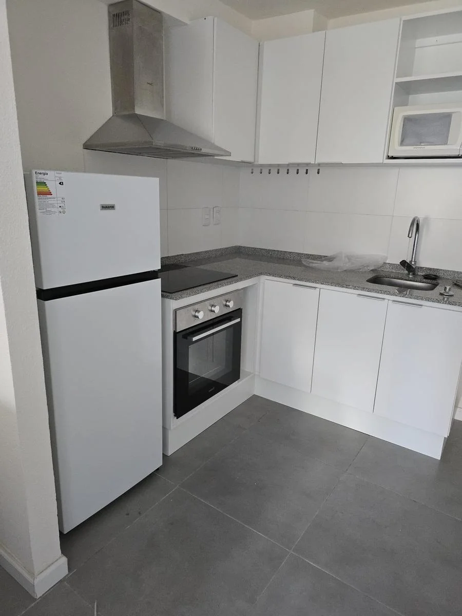 Es un ambiente con salida a terraza al frente, cocina integrada y un baño. Cuenta con aire acondicionado, cocina completa: anafe electrico, horno electrico, microondas, heladera, termotanque, juego comedor, cama 2 plazas, sillón 2 plazas, mesa living.