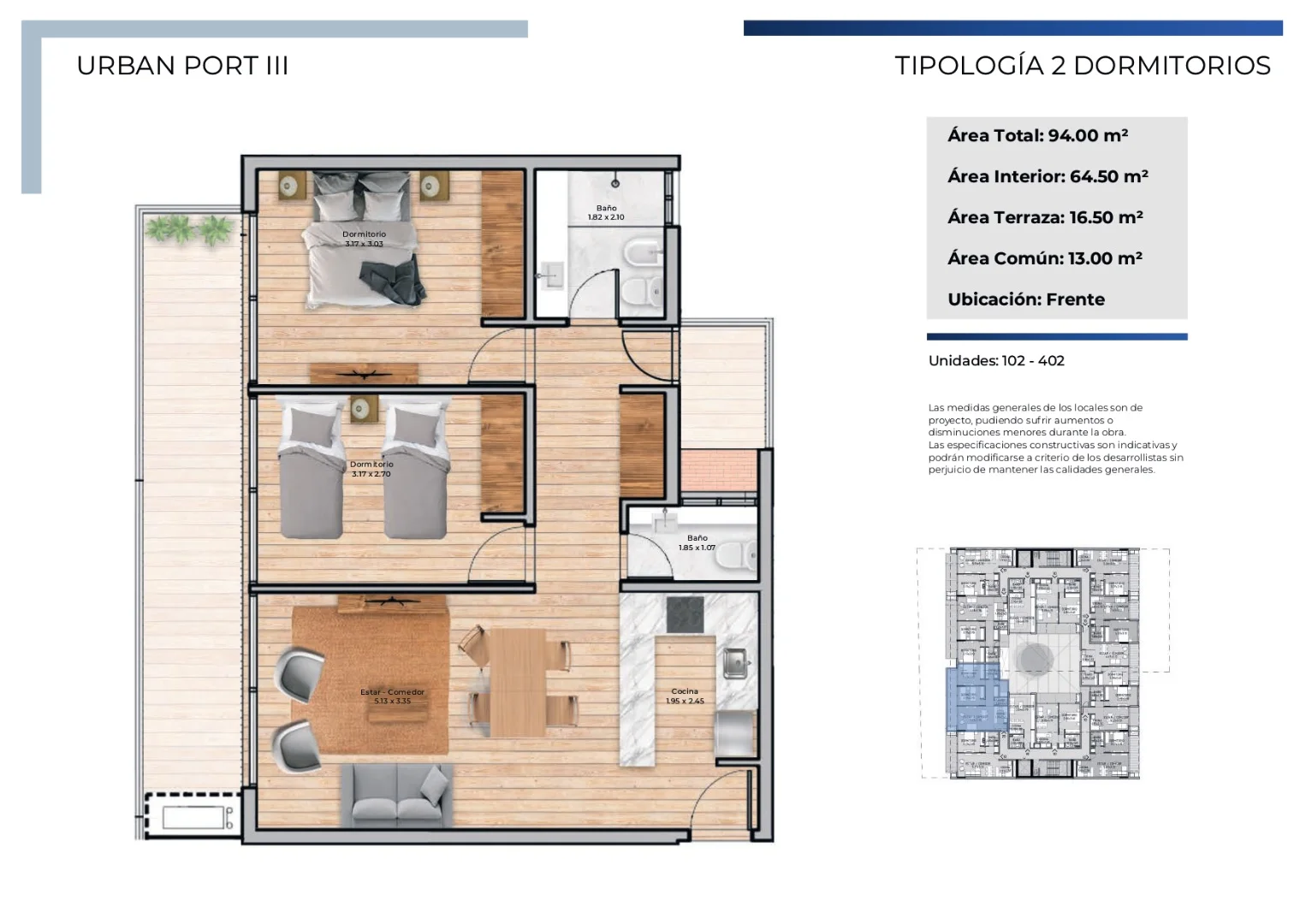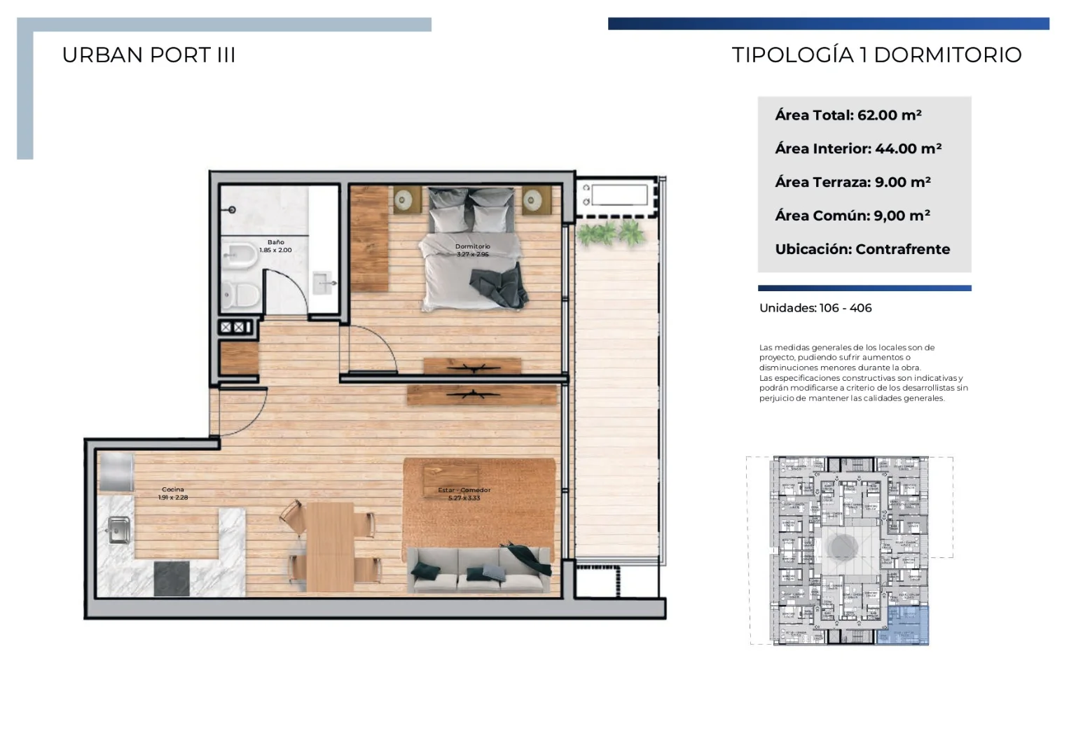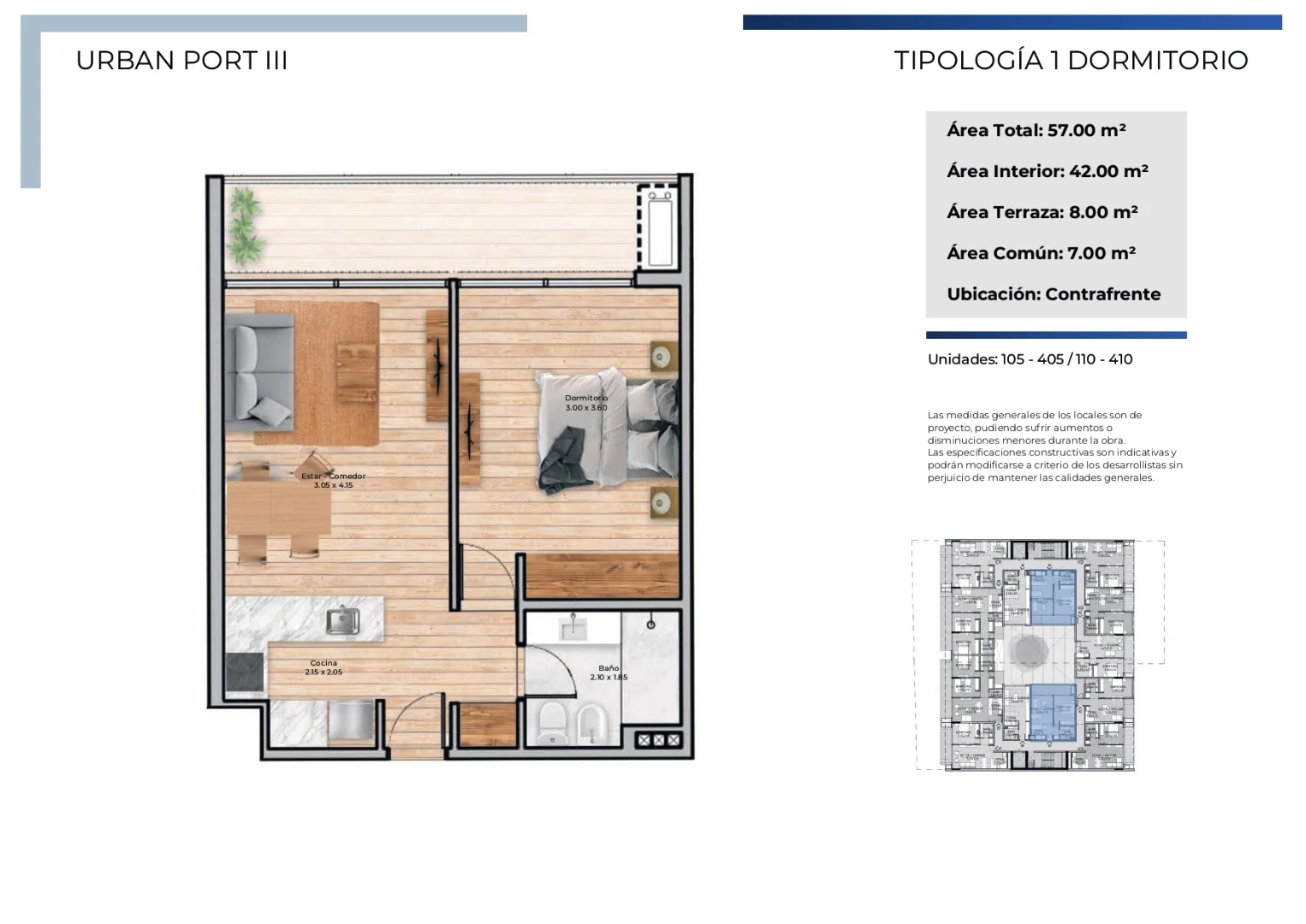 Apartamentos monoambiente, de 1 y 2 dormitorios, todos con terraza
