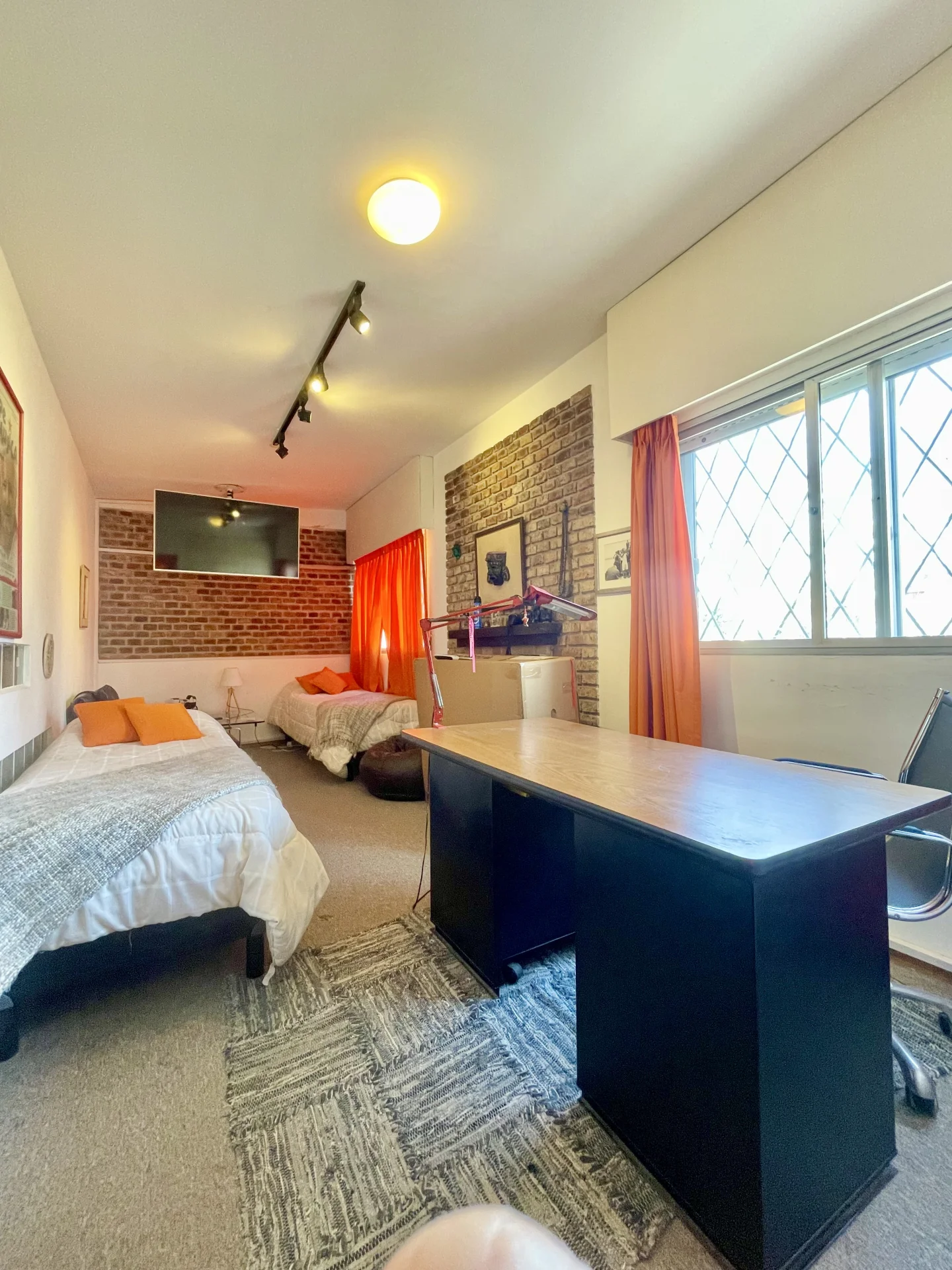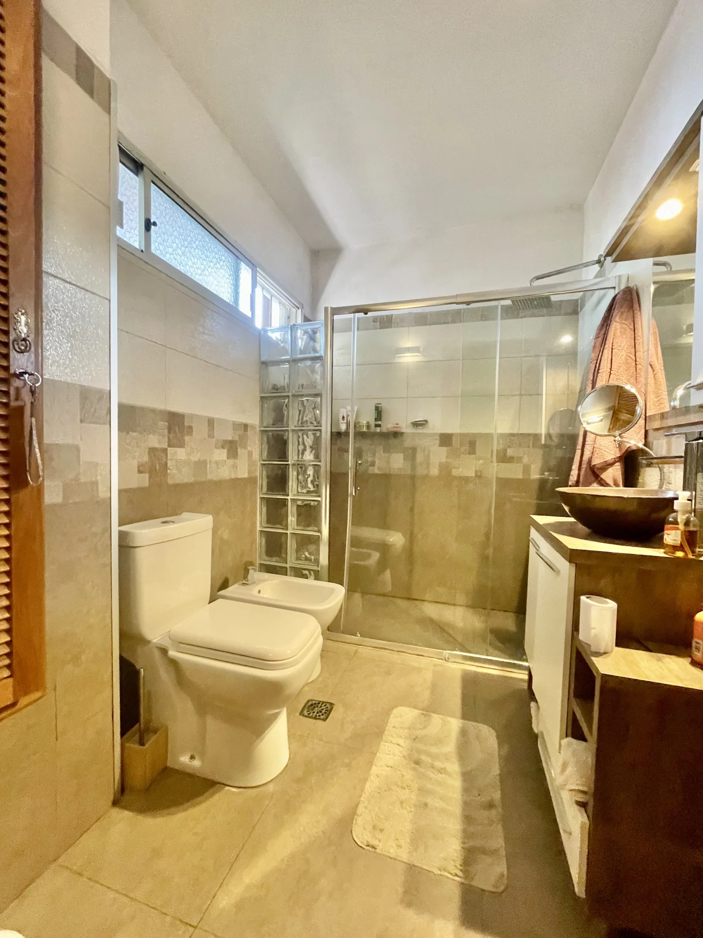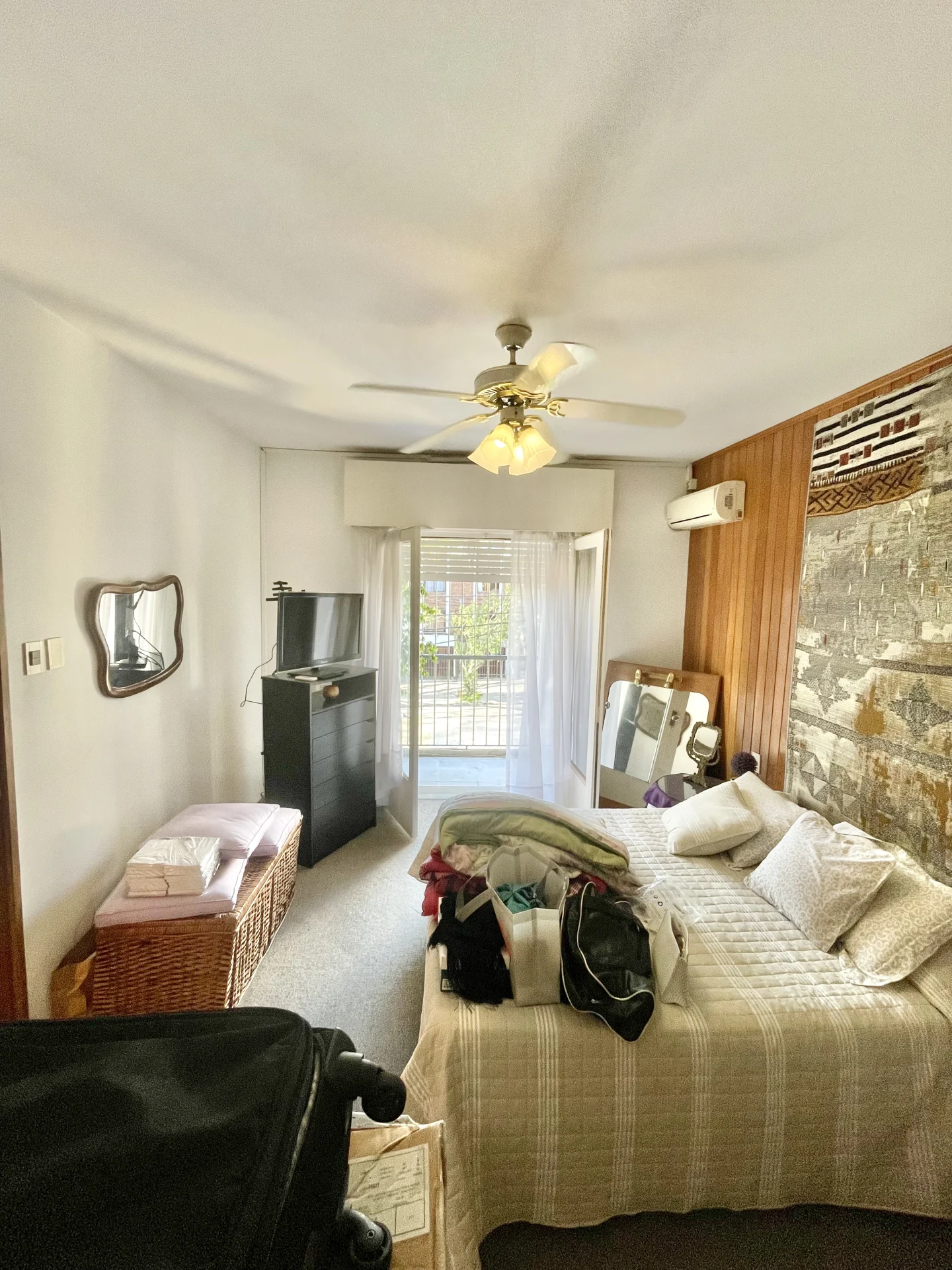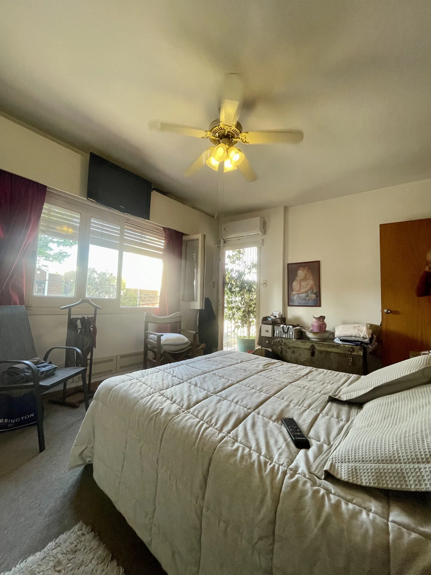 Se encuentran tres dormitorios, dos baños completos, una terraza balcón al frente y otra al contrafrente. La orientación norte proporciona luz natural en gran parte del día.