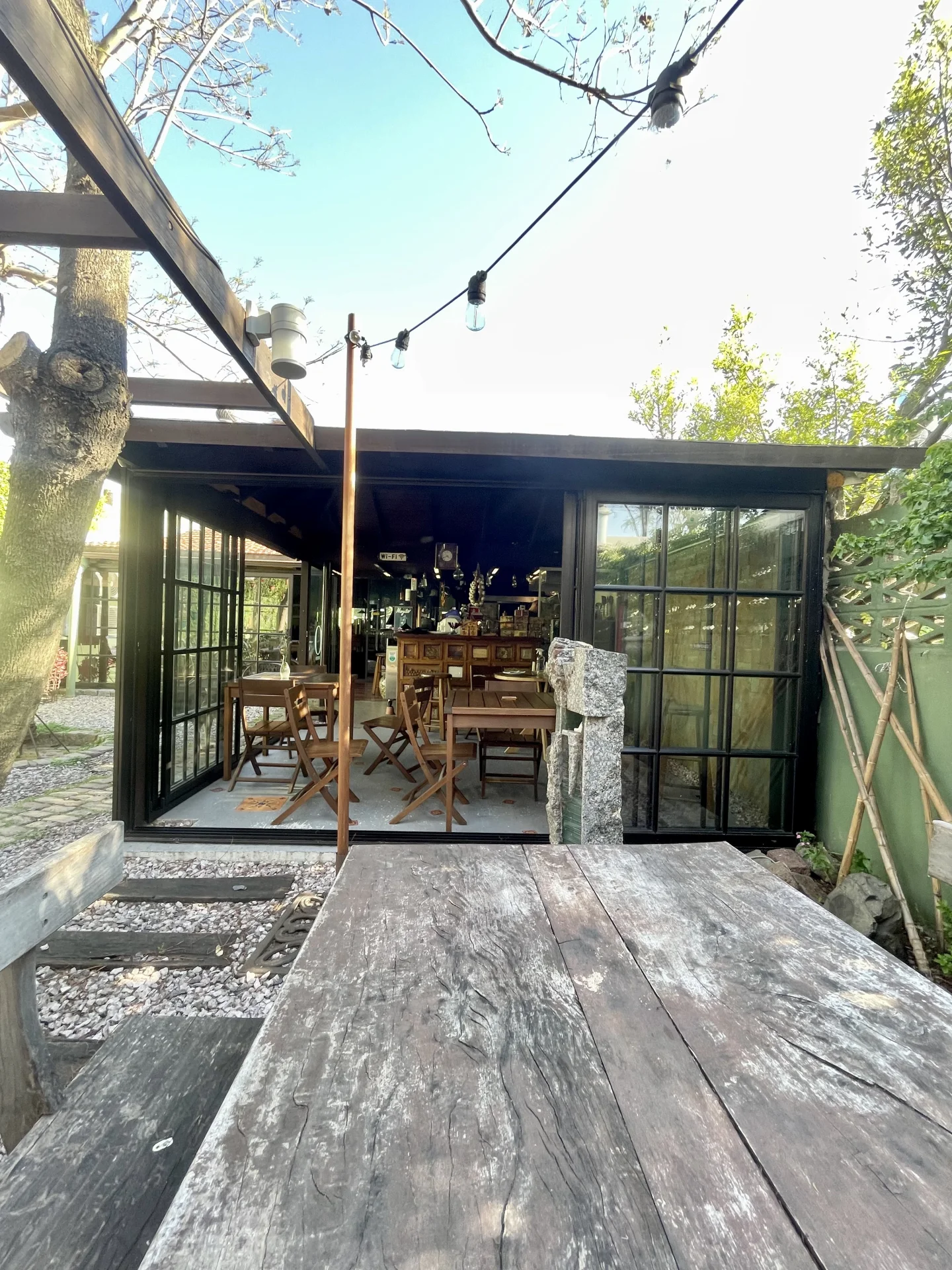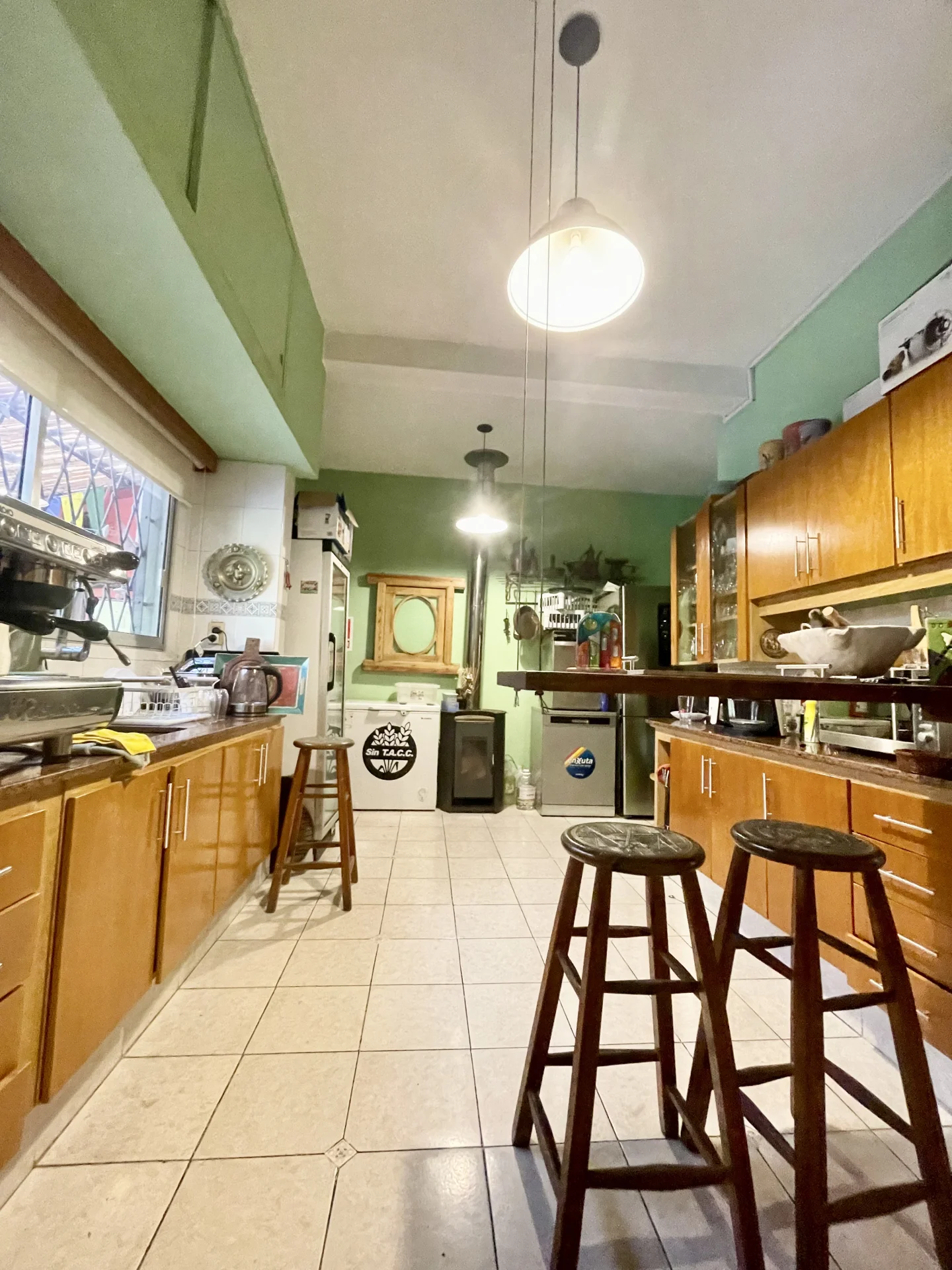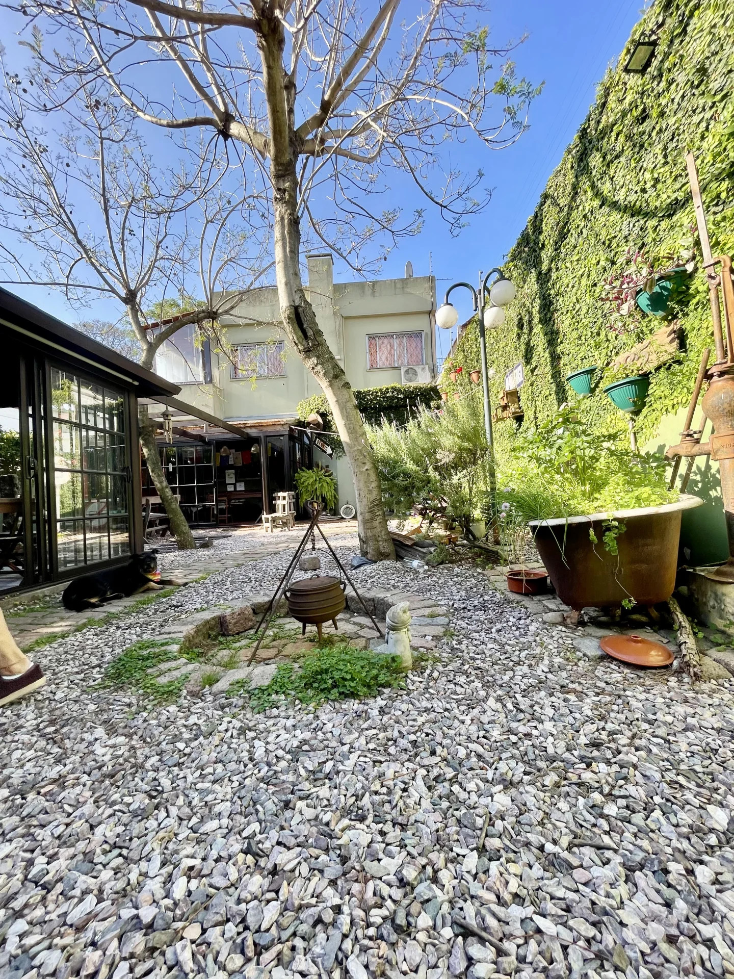 Jardin con retiro para tres coches entrada al Living comedor con ventanales al exterior , estufa a leña , estar integrado a una cocina de generosas dimensiones cochera garaje toilette de visita.
