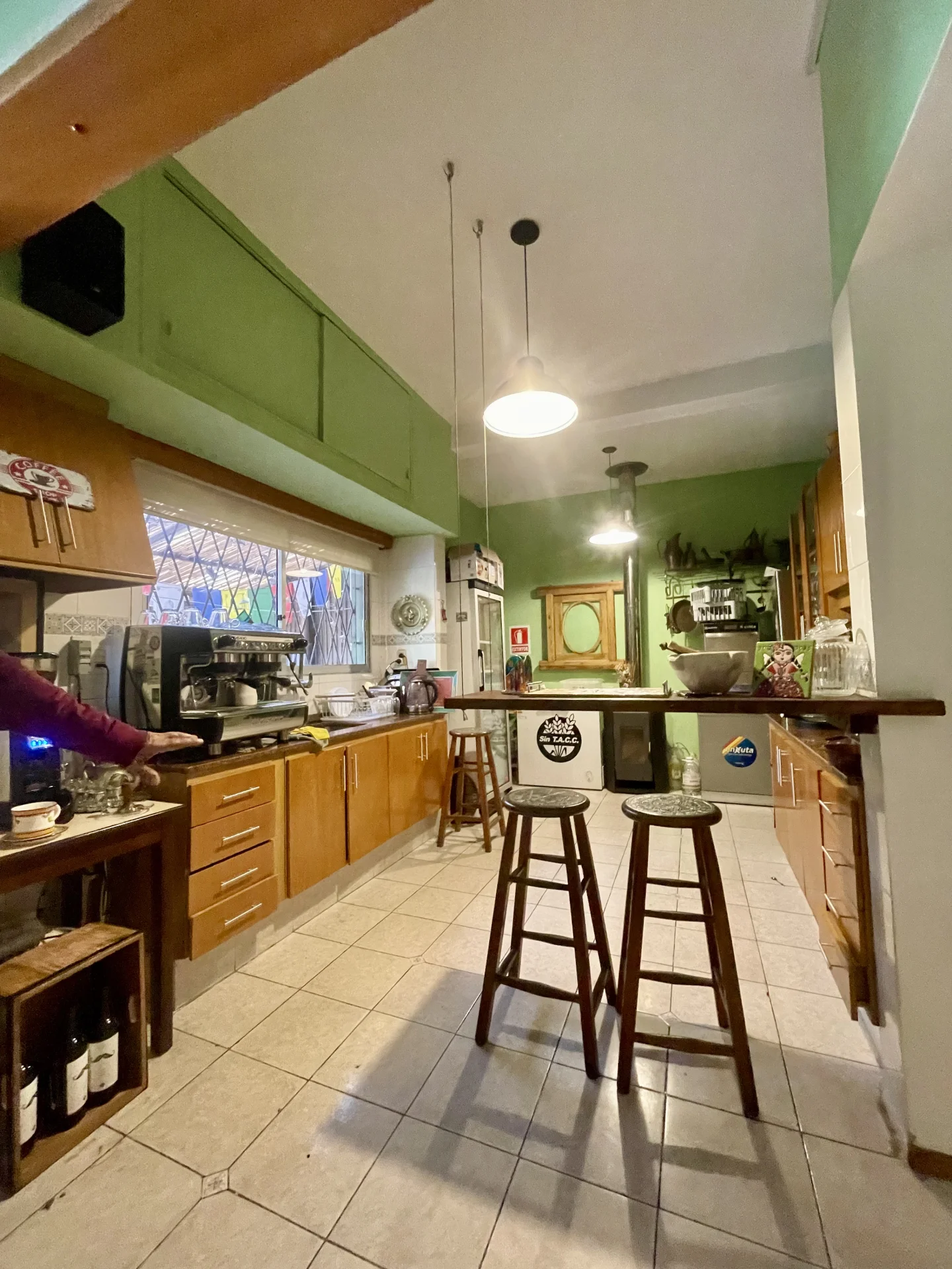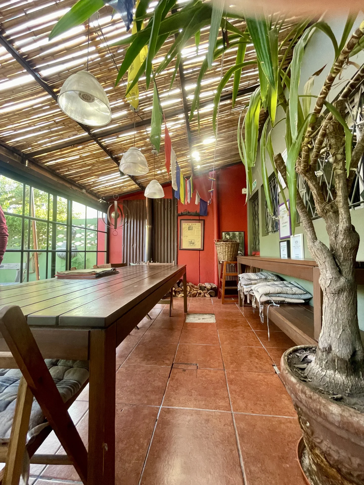 Acceso al un amplio fondo con una barbacoa completa completa con parrillero estufa a leña y baños.