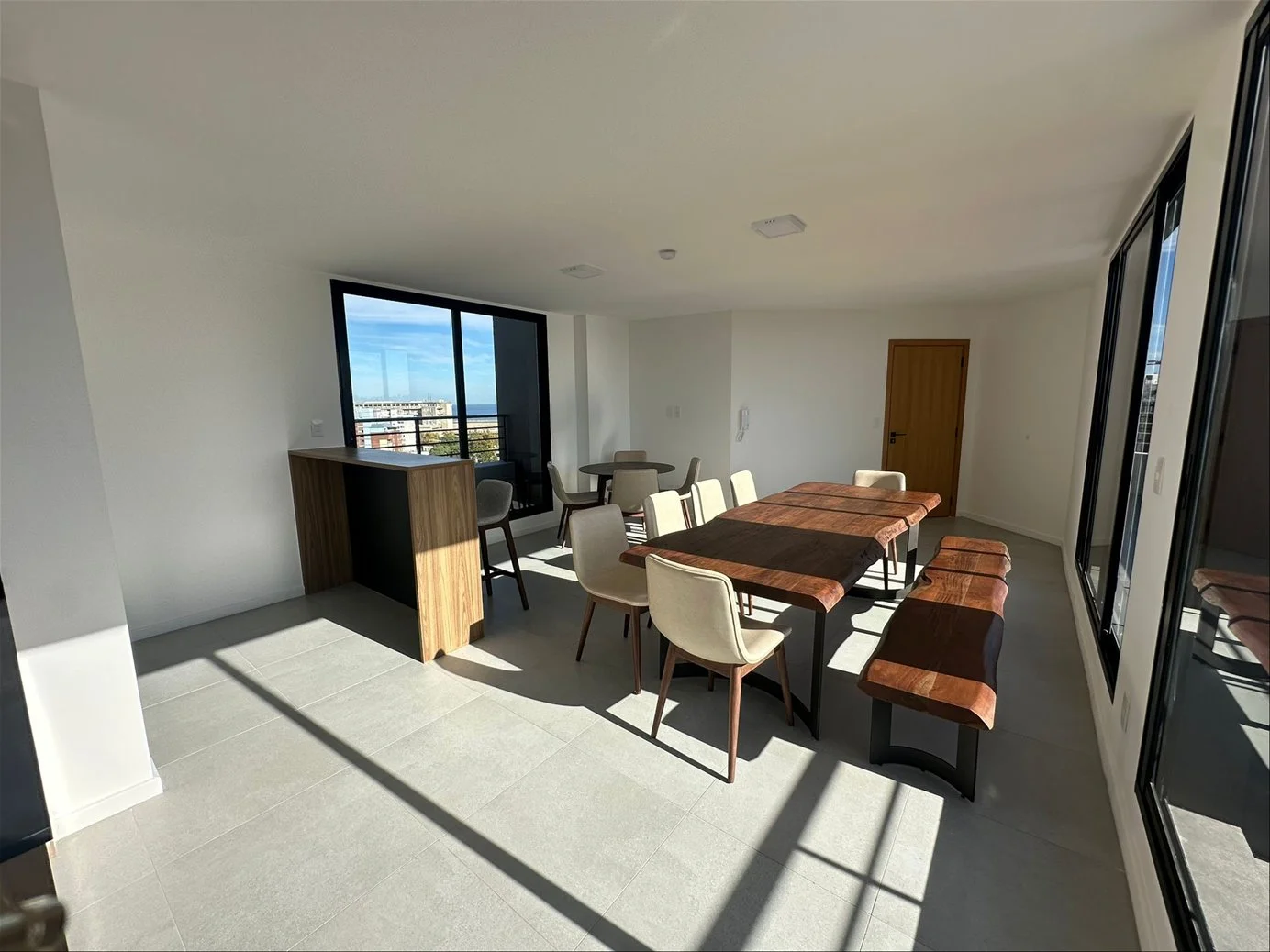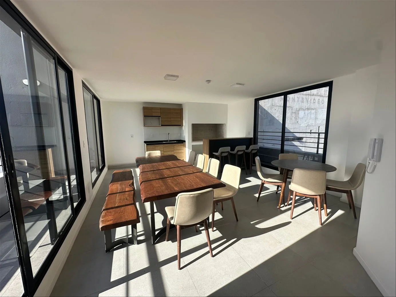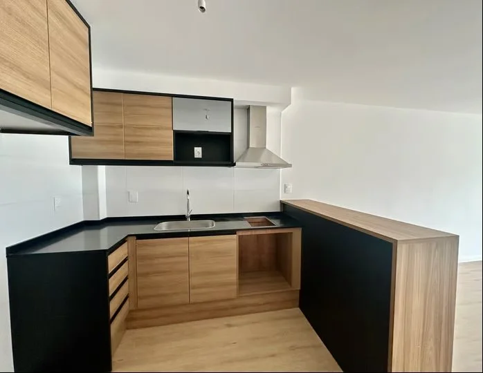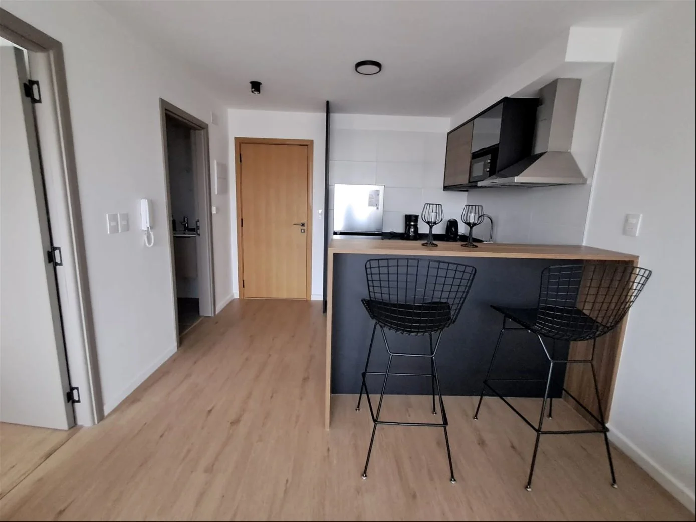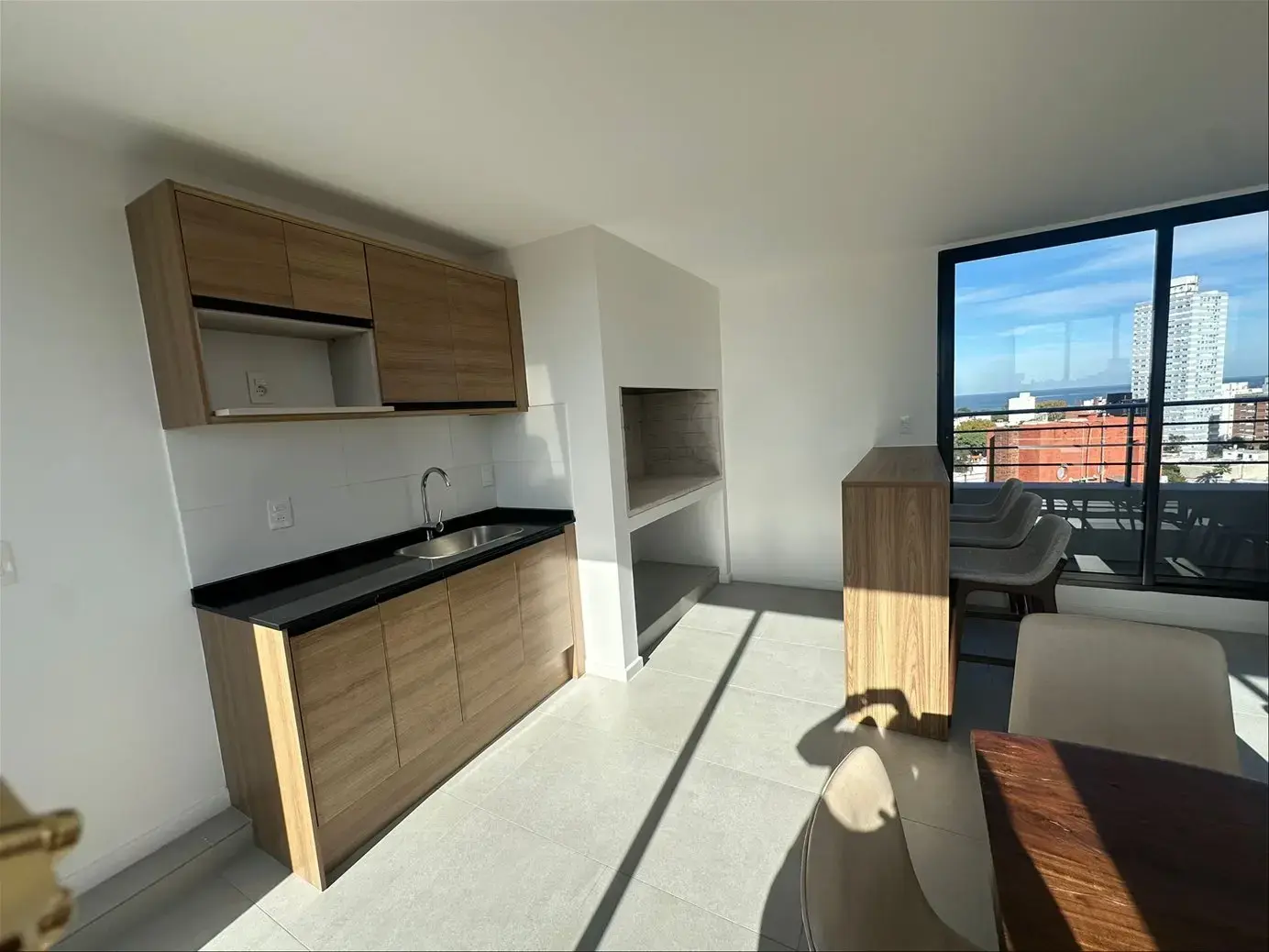 Cocinas con mesada de granito y pileta de acero inoxidable.