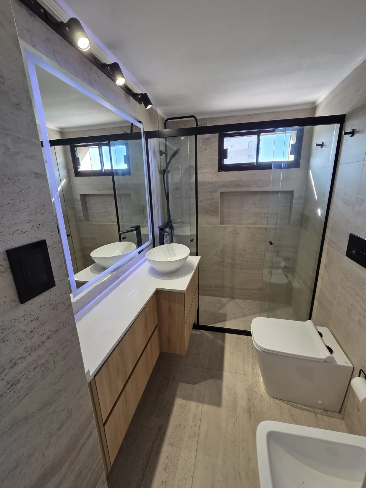2 baños completísimos con mampara de vidrio templado, con artefactos y grifería de primera calidad.