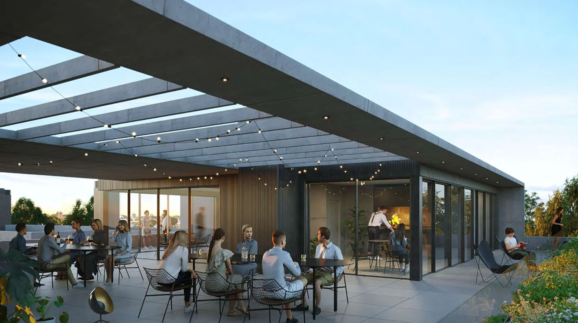 Amenities como solárium, gimnasio, barbacoa, playroom y una sala laundry equipada. Tambien un gran jardín verde de uso recreativo.