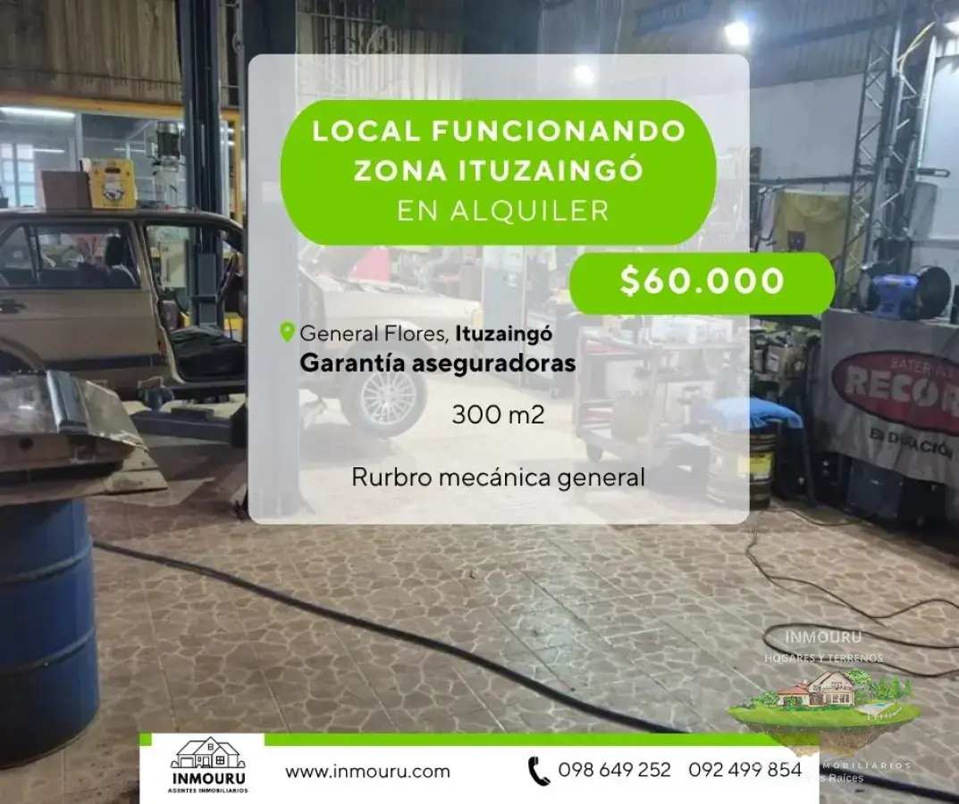 Se alquila local funcionando en zona Ituzaingó, sobre avenida. Trabajando en el rubro de mecánica general, inyección y lubricentro. Servicio de parking con muy buena clientela. Posibilidad de anexar (electricidad, chapa y pintura, alineadora, lavadero etc.). Muy buena ubicación con entrada para camiones con 7 metros de ancho, trifásica, altura de 6 metros. Cuenta con alarma y cámara de seguridad interior y exterior. Garantías: Aseguradoras. Alquiler: $60.000 Honorarios profesionales: 1 mes de alquiler. Agente Lorena. Referencia Interna : Tera-1608