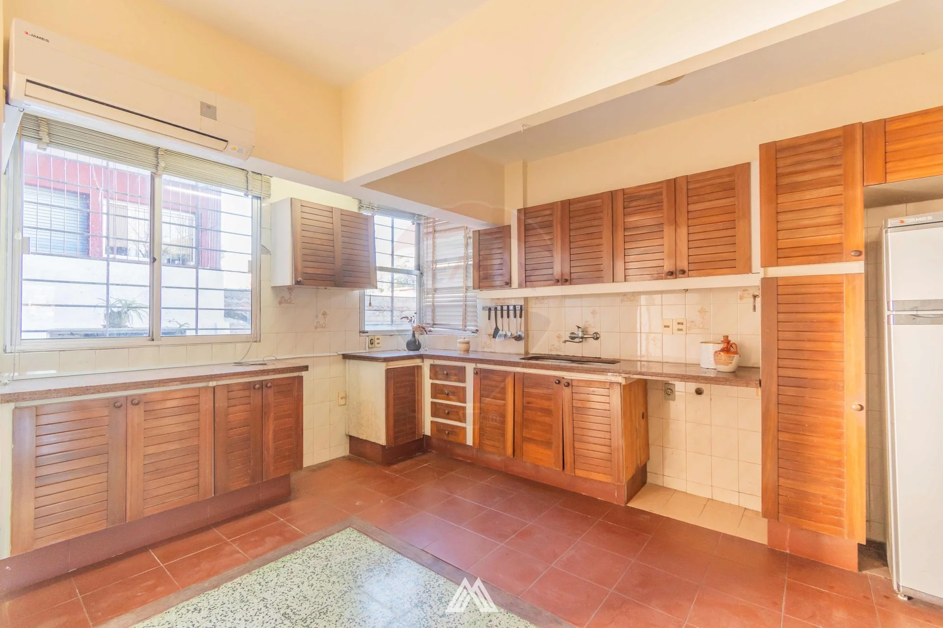 Living comedor de buen tamaño con cocina integrada. La cocina tiene mesada de granito en L y muebles sobre y bajo mesada, grandes ventanas que permite el ingresos de luz natural.