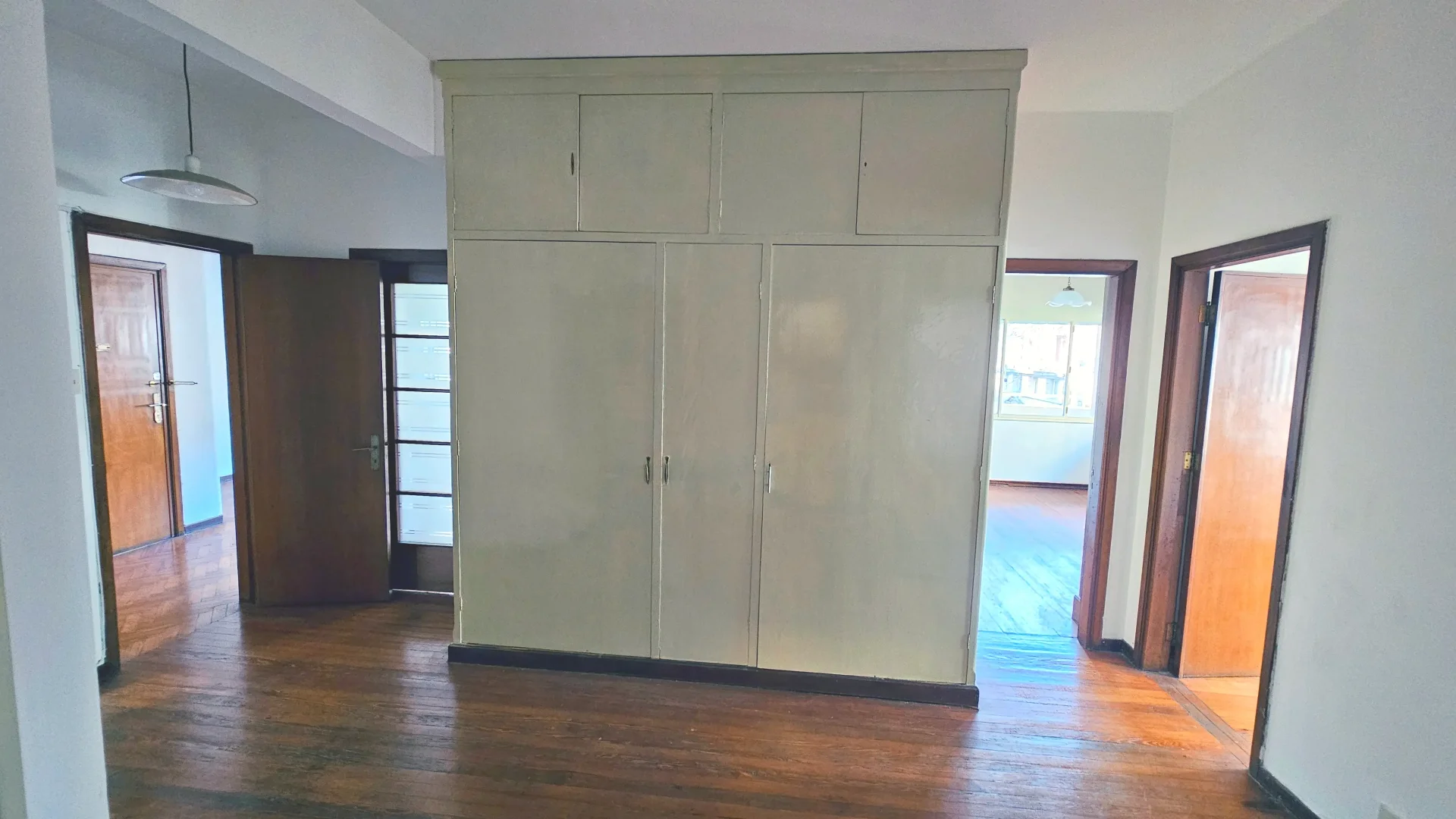 - Hall central de distribución con 2 placares de grandes dimensiones, conecta todos los ambientes del apartamento, baños y cocina.