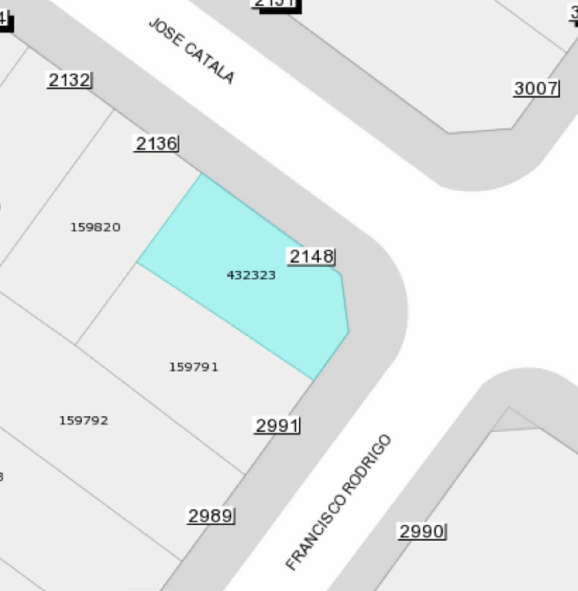 Este terreno tiene 197m2 limpios y nivelados, se encuentra ubicado en la esquina de Catala y Fco. Rodrigo.