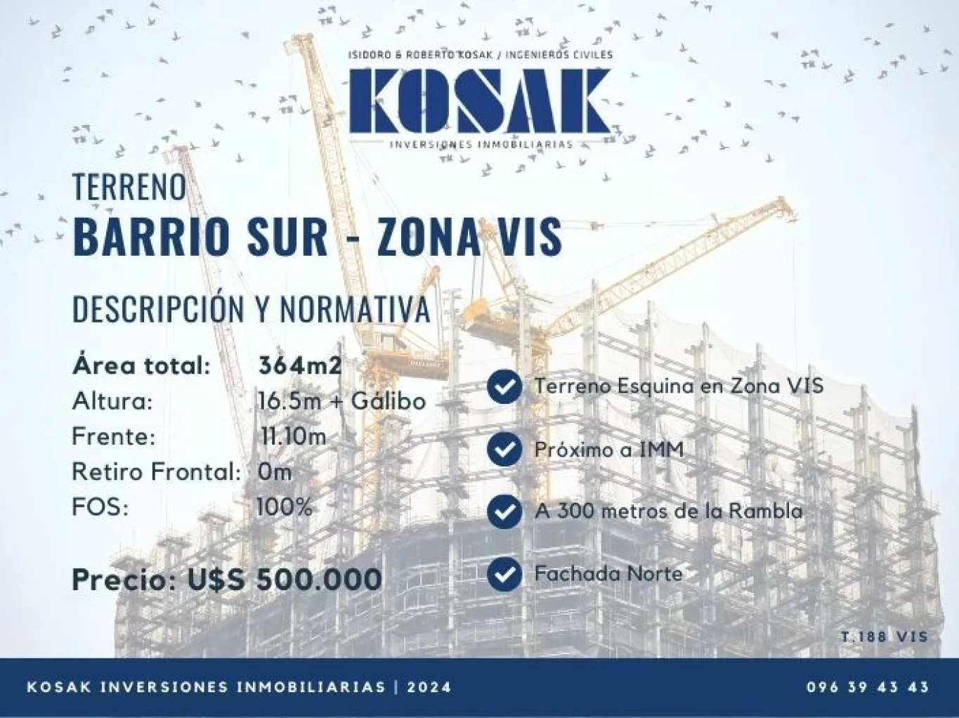 KOSAK INVERSIONES - TERRENOS Terreno en hermosa zona de Barrio Sur. A 300m de la Rambla, cerca de entornos verdes, a pocas cuadras del Parque Rodó. Fachada principal orientación Norte. Área total: 364m2 Altura: 16.5m + Gálibo Frente: 11.10m Retiro Frontal: 0m FOS: 100% Por consultas comunicarse con Arq. Valentina Kosak - 096394343