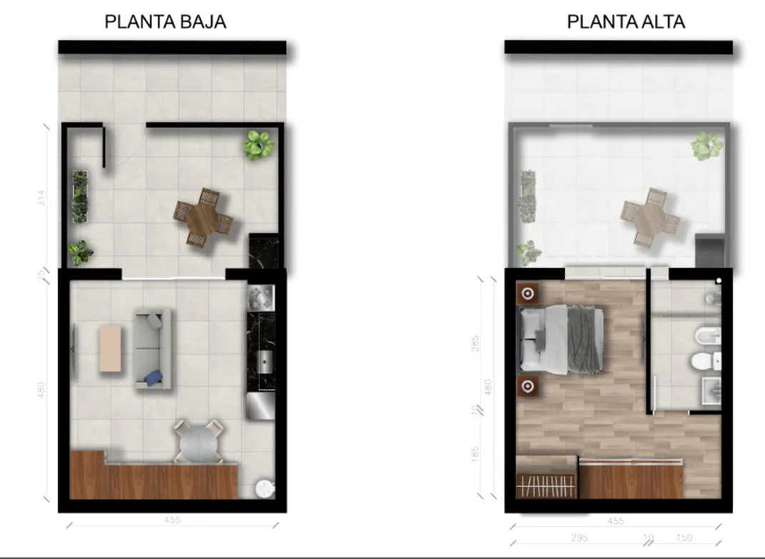 Son 56m2, 41m2 construidos en dos plantas y espacioso patio de 15m2
