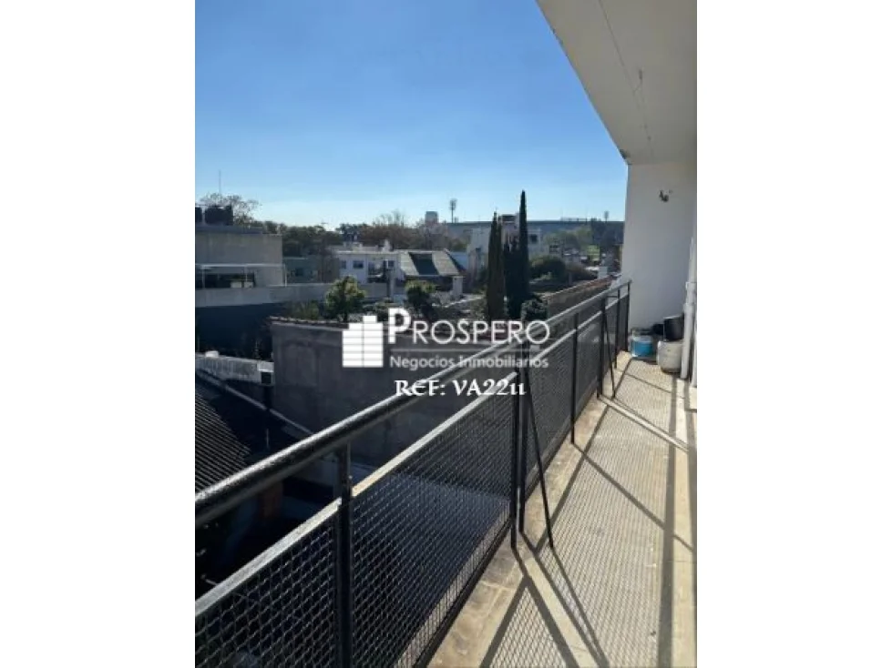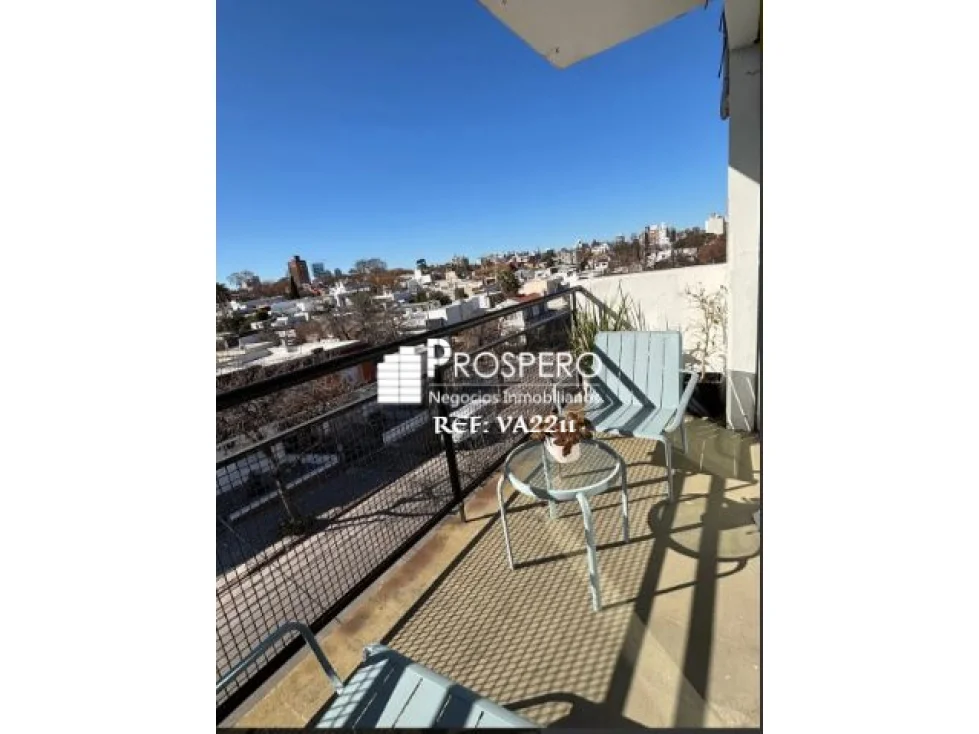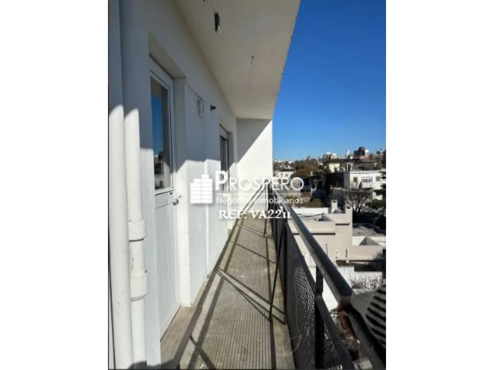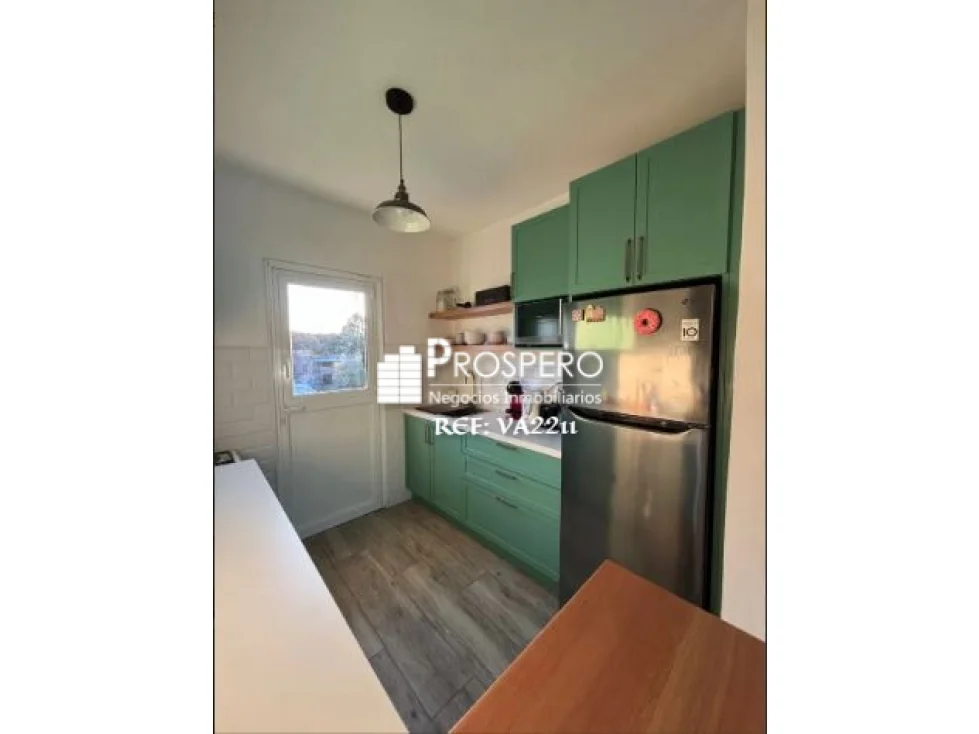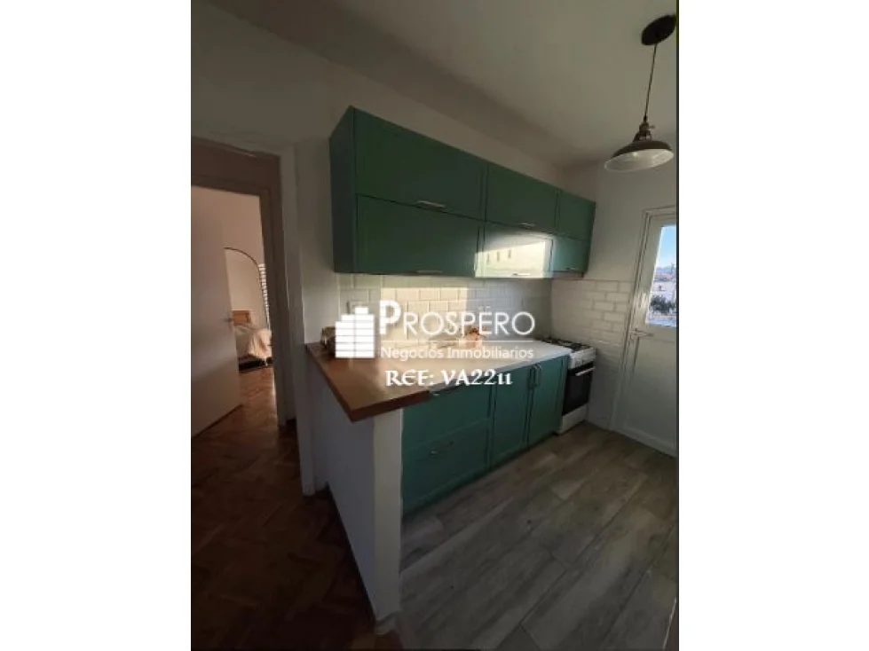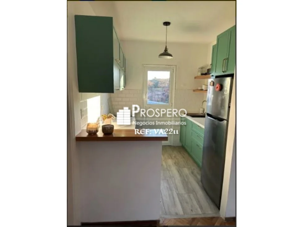 Living-comedor con salida al balcón y aire acondicionado, cocina definida equipada con muebles aéreos y bajo mesada, con salida a terraza al contra-frente.