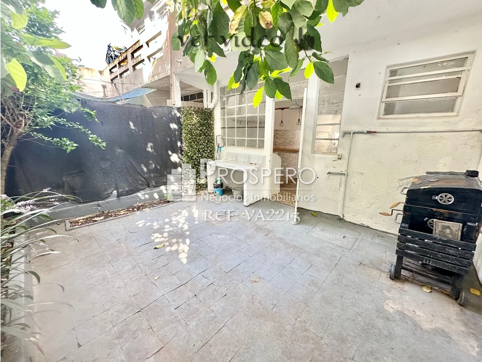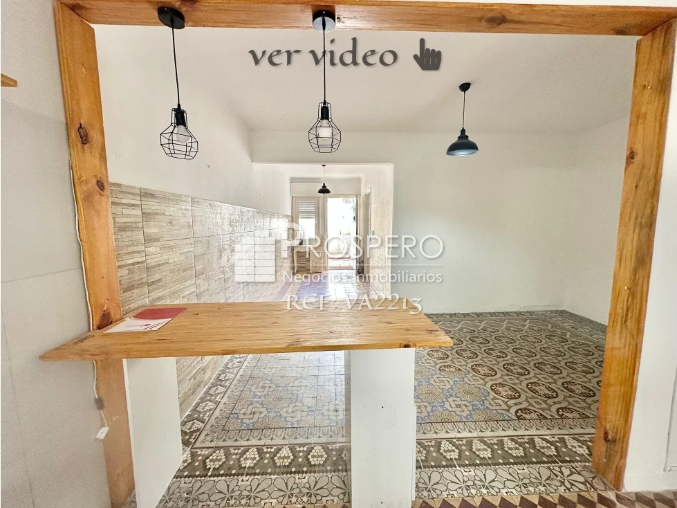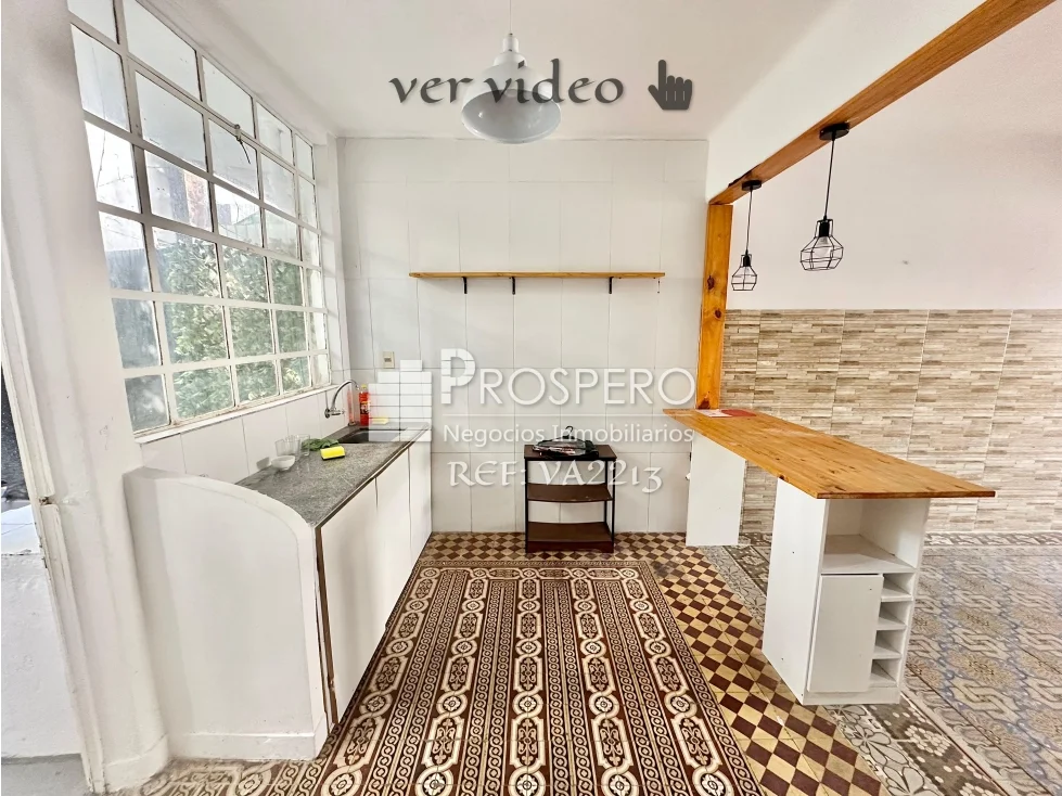 Cocina semi-integrada con barra desayunadora y muebles bajo mesada, por esta misma se sale al patio interior.