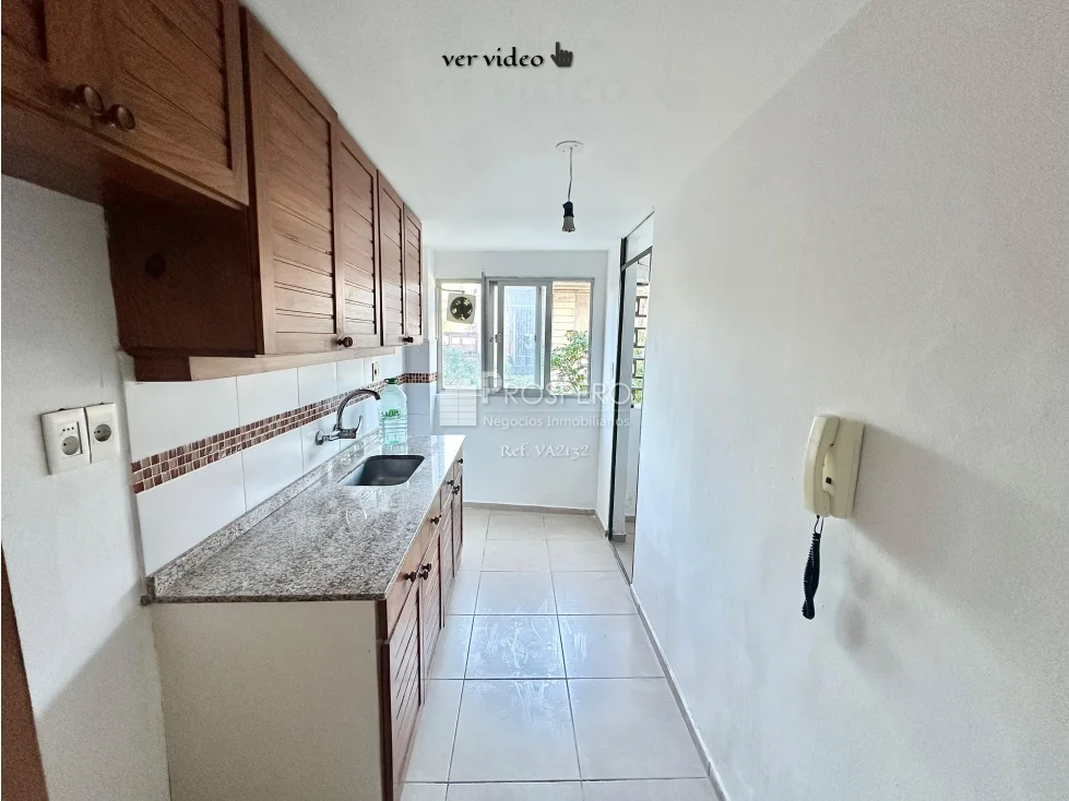 Cocina definida con muebles aéreos y bajo mesada con salida a terraza lavadero.