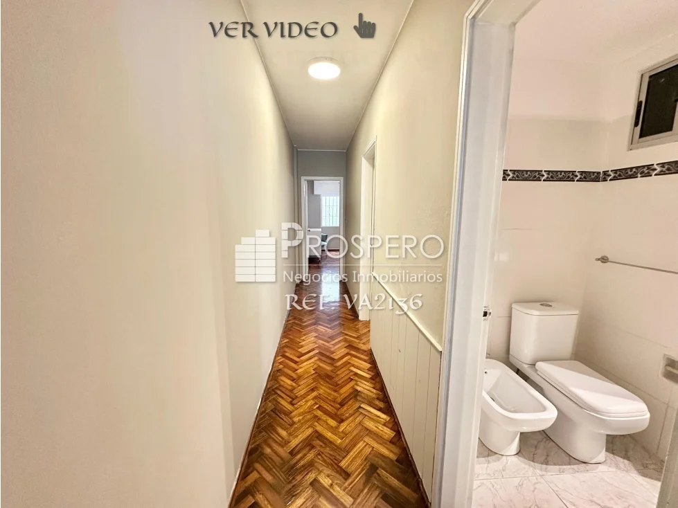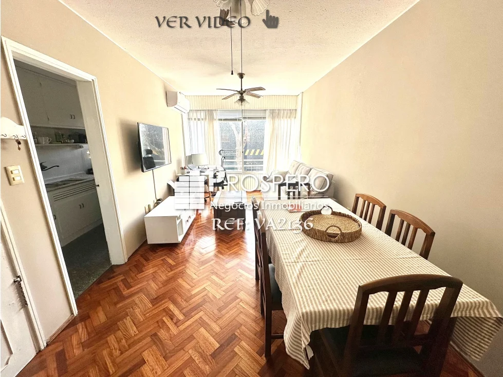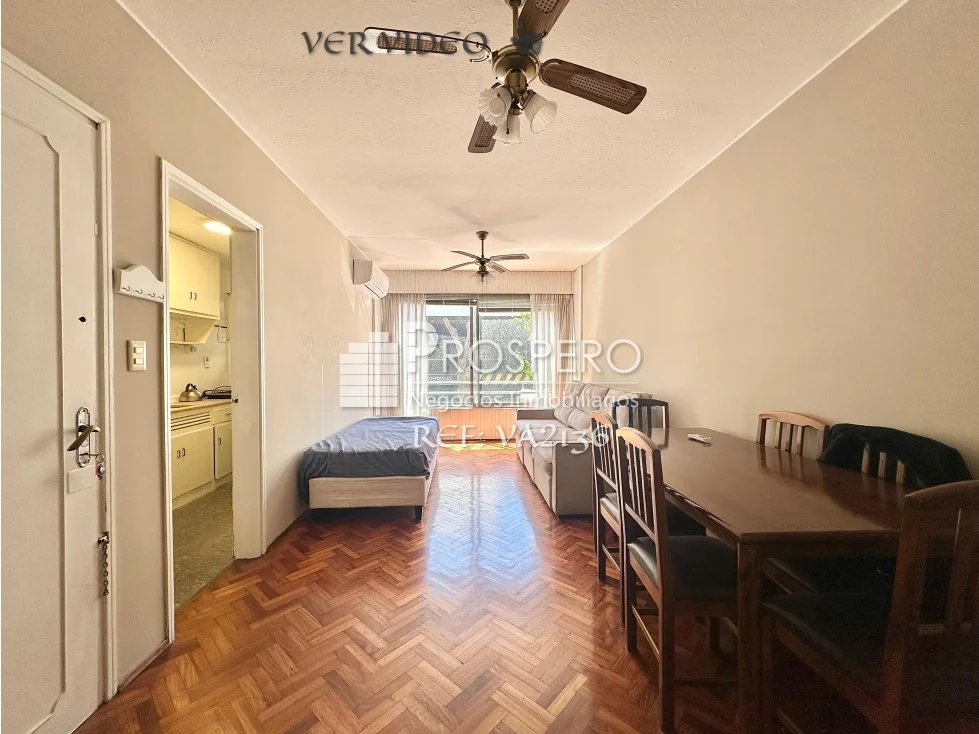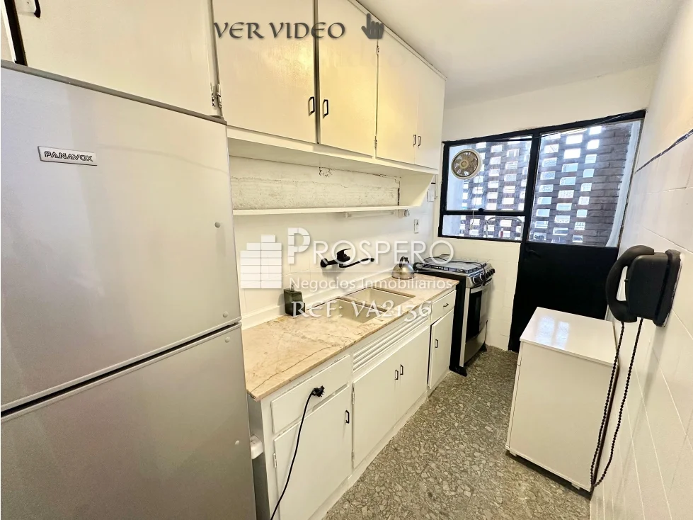 Amplio y luminoso living-comedor con gran ventanal al frente. Cocina definida, equipada con muebles aéreos y bajo mesada, con salida a terraza.