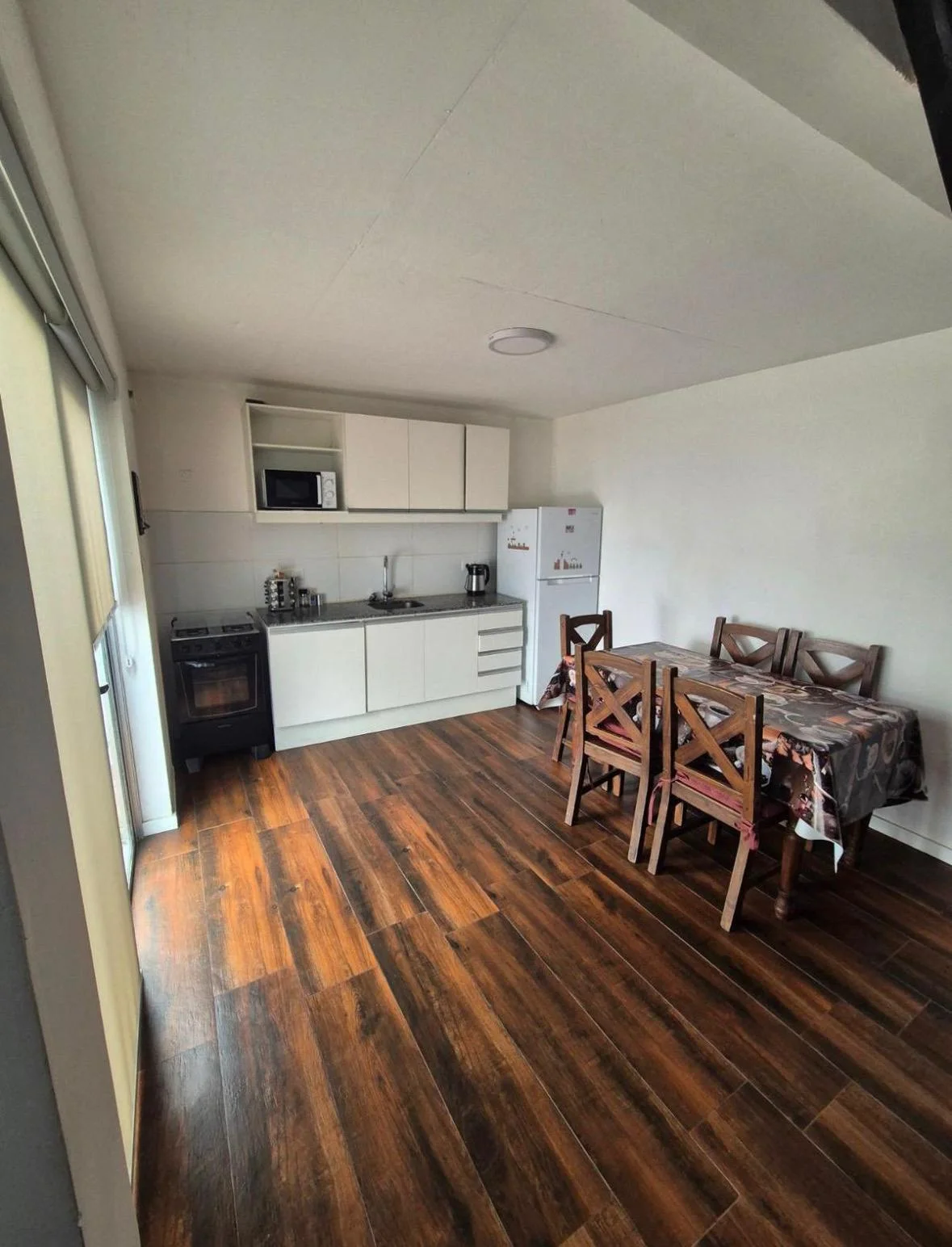 Cocina comedor de buenas dimensiones con placares sobre y bajo mesada