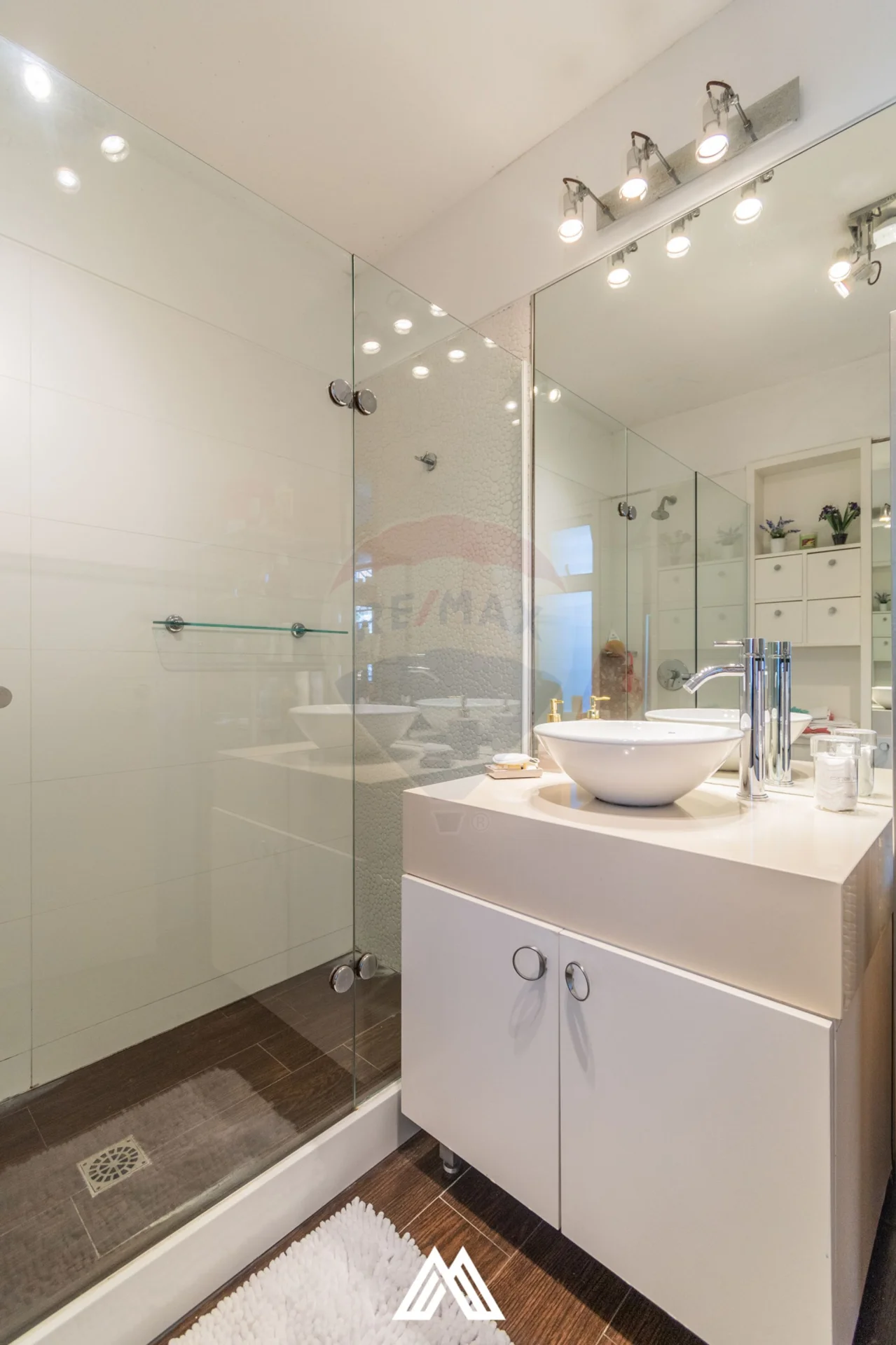 Suite matrimonial con vestidor y placares. Baño con ducha y doble bacha.