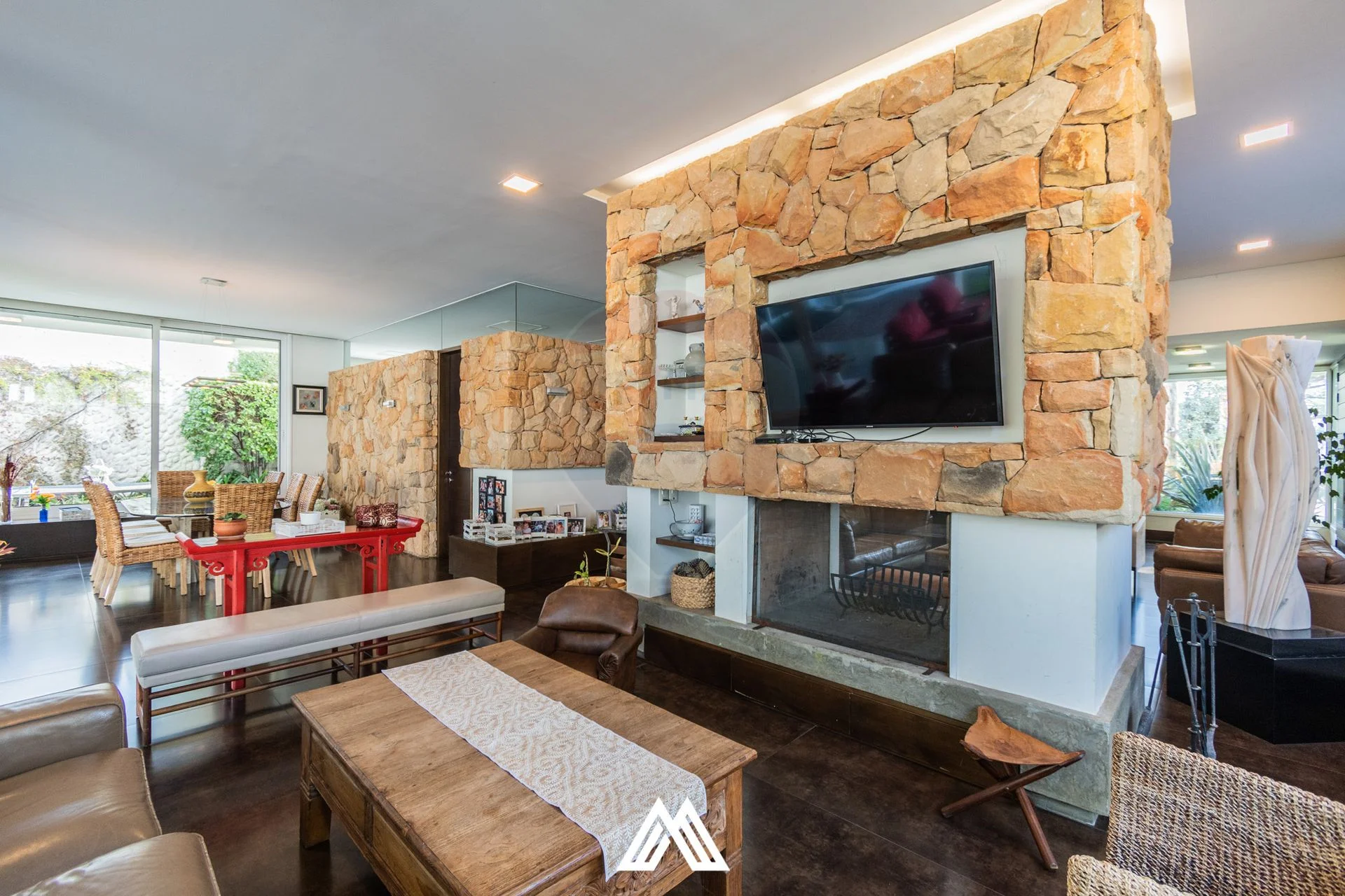 Amplio living y estar separados con estufa de leña compartida con salida al jardin.