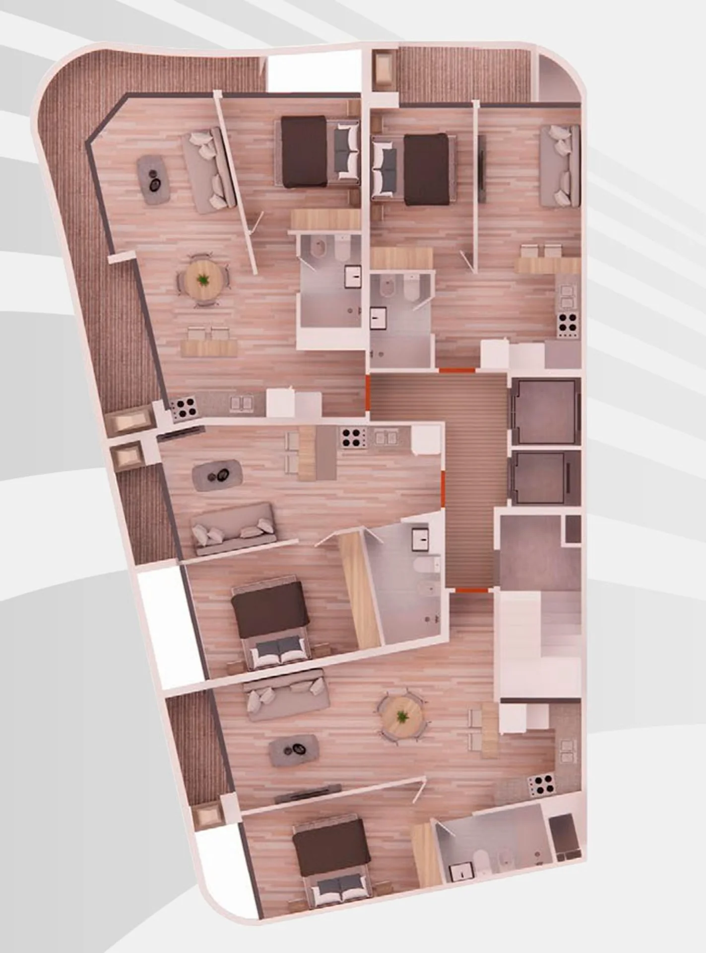 Henko Soho cuenta con 12 pisos, compuestos por 35 unidades de 1 y 2 dormitorios, un local comercial y 2 subsuelos destinados a 18 plazas de estacionamiento.
