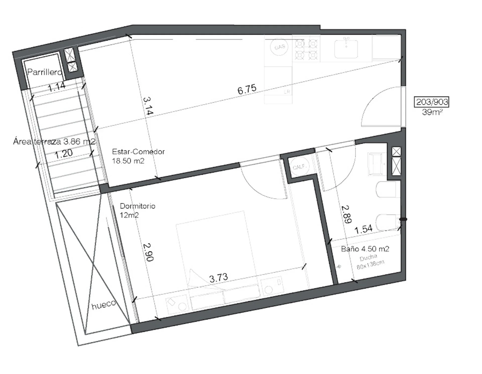 Ubicado en el piso 4 UNIDAD 403 con frente a la calle Juan A. Rodriguez, tenemos esta unidad con living comedor con cocina abierta, terraza con parrillero, todas las aberturas con DVH, 1 dormitorio y 1 baño completo.