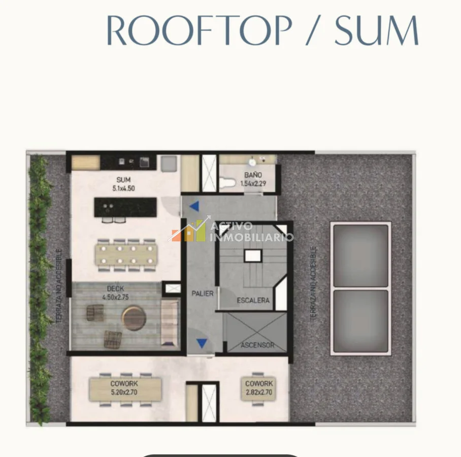 - El edificio contará con: espacio para guardar bicicletas, roftoop con SUM, barbacoa, laundry y cowork.