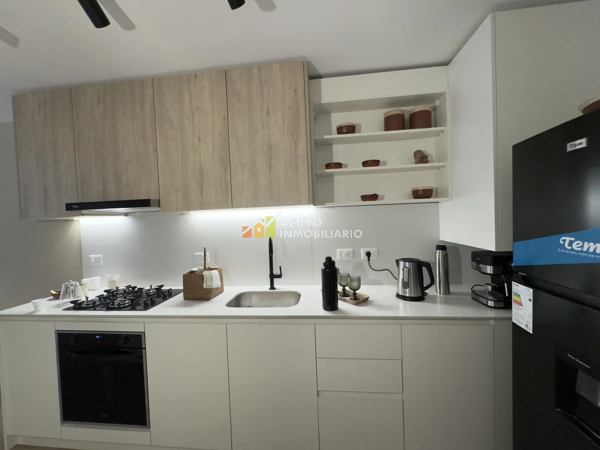 - Cocina integrada con placares aéreos, barra, muebles bajo mesada y conexión a lavarropas
