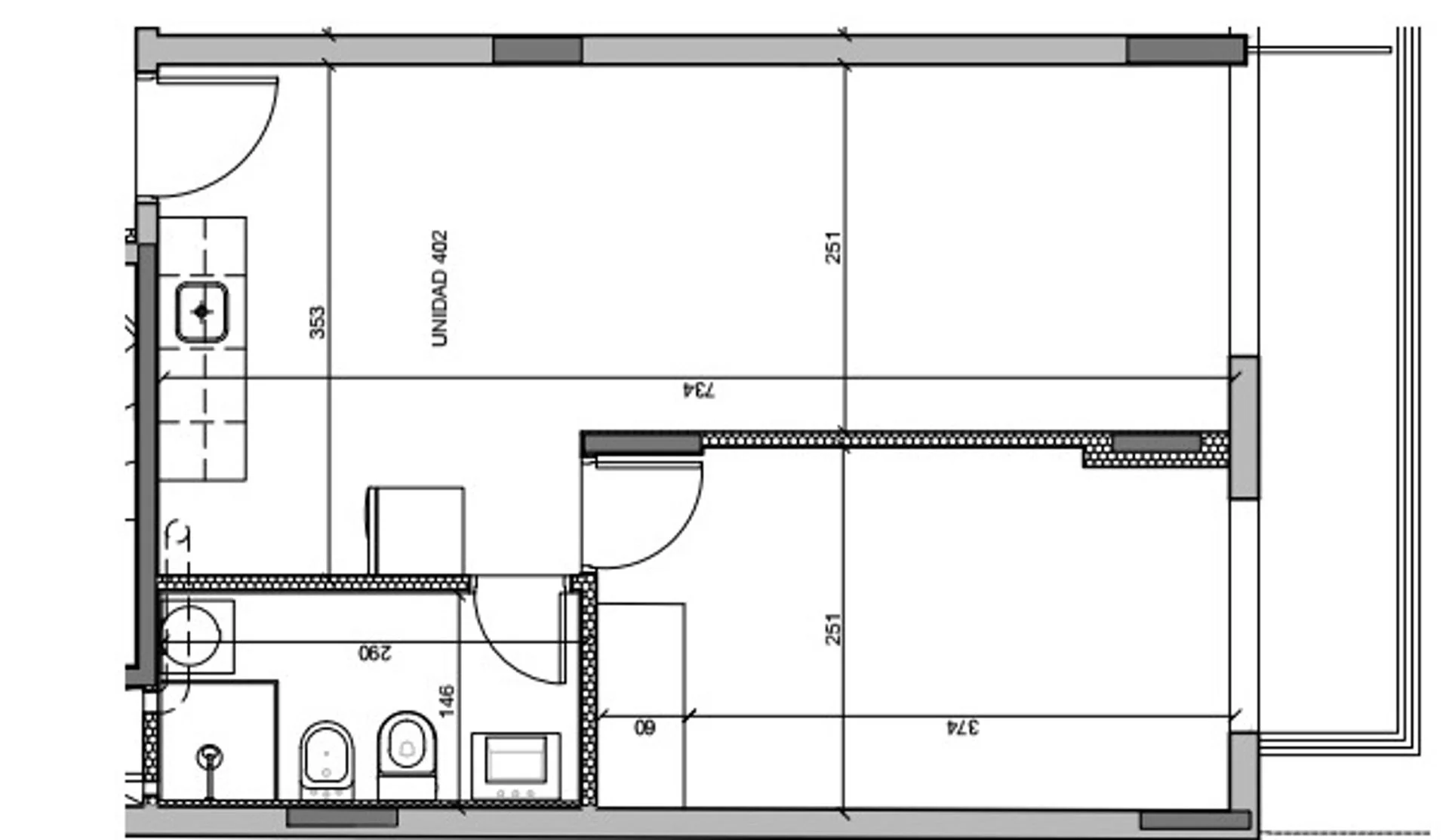 Al acceder nos encontramos con el living comedor con balcón. Cocina integrada con muebles bajo mesada, aéreo y campana extractora. Baño completo con instalación para lavarropa. Cómodo dormitorio, incluye placard con espejo empotrado.