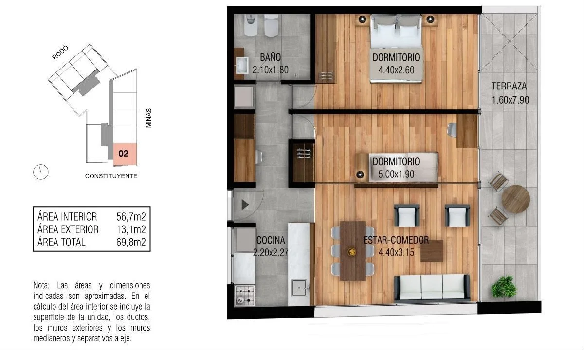 Constituyente esquina Minas. A Estrenar. Segundo piso muy luminoso. Todo al frente con salida a gran terraza.