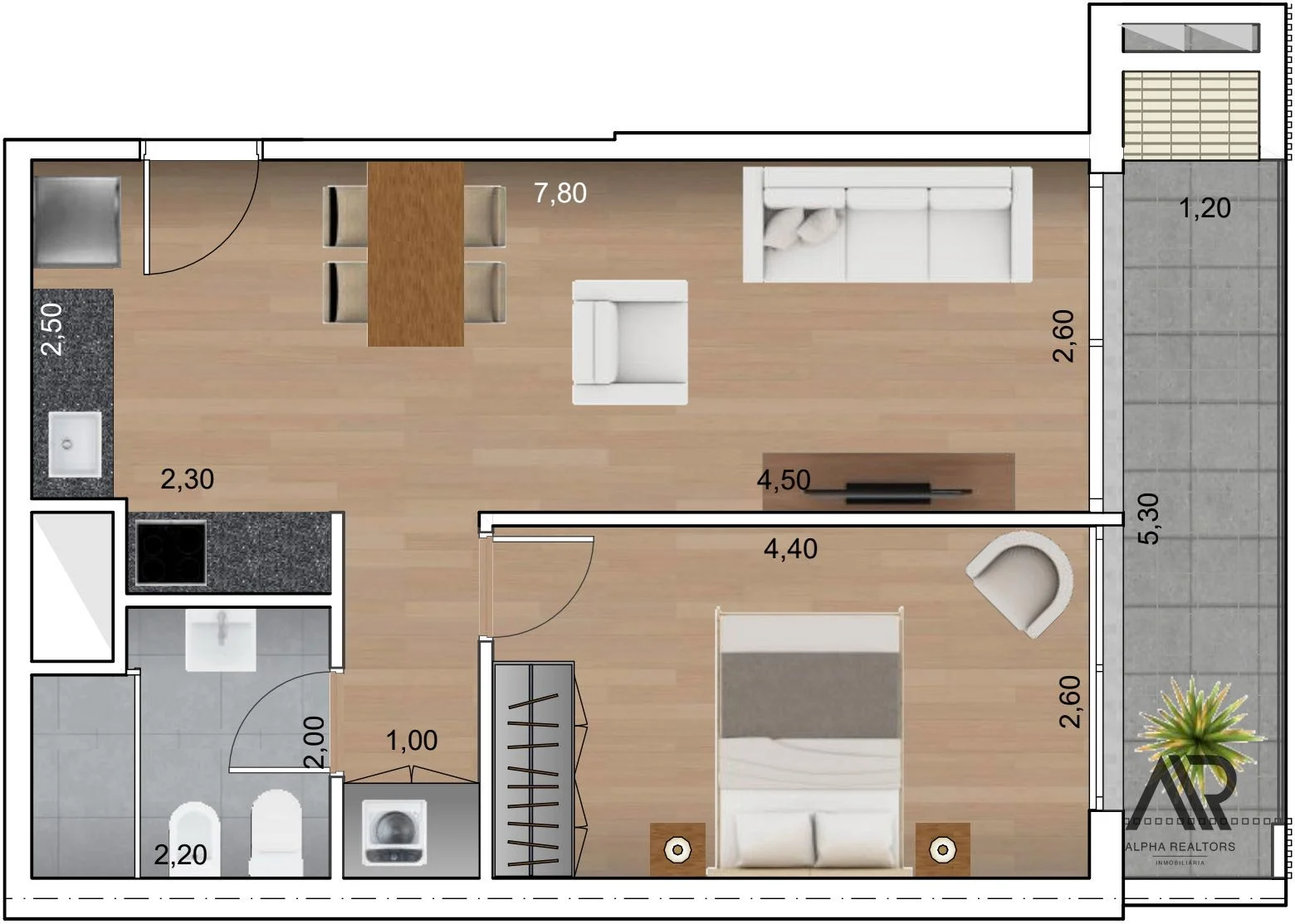 Son 52 m², siendo 45 m² internos propios y 7,5 m² de cómoda terraza!