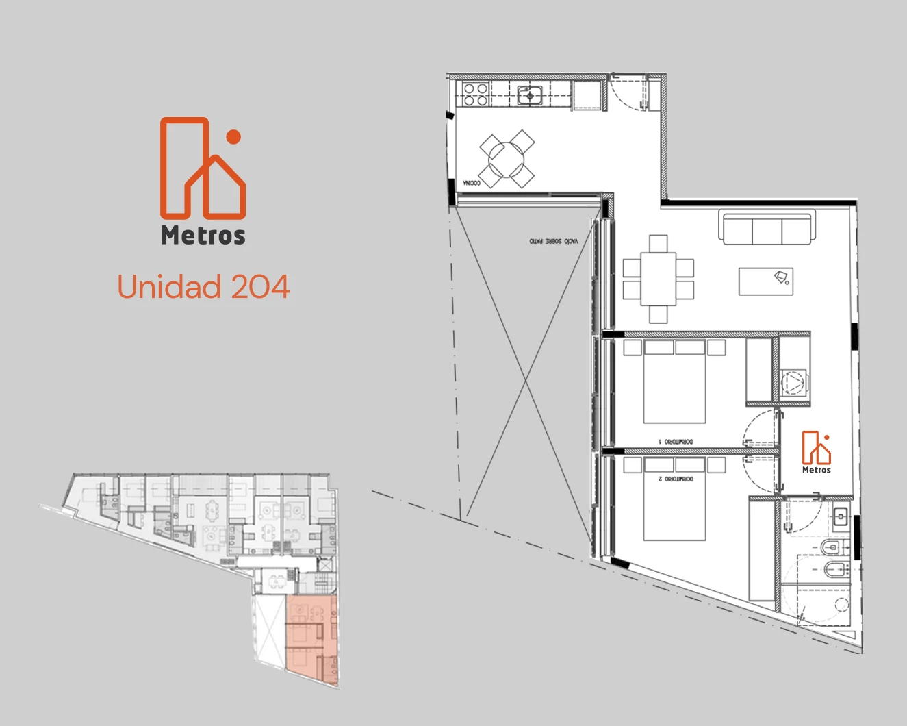 Esta unidad cuenta con 2 dormitorios con placard. Baño completo con excelentes terminaciones y diseño contemporáneo.